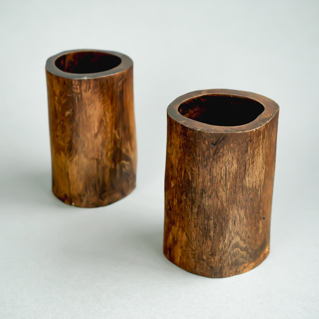 木そのものの表情を活かした素朴なペンスタンド。不要になったチーク材を再活用したリサイクルアイテムです。