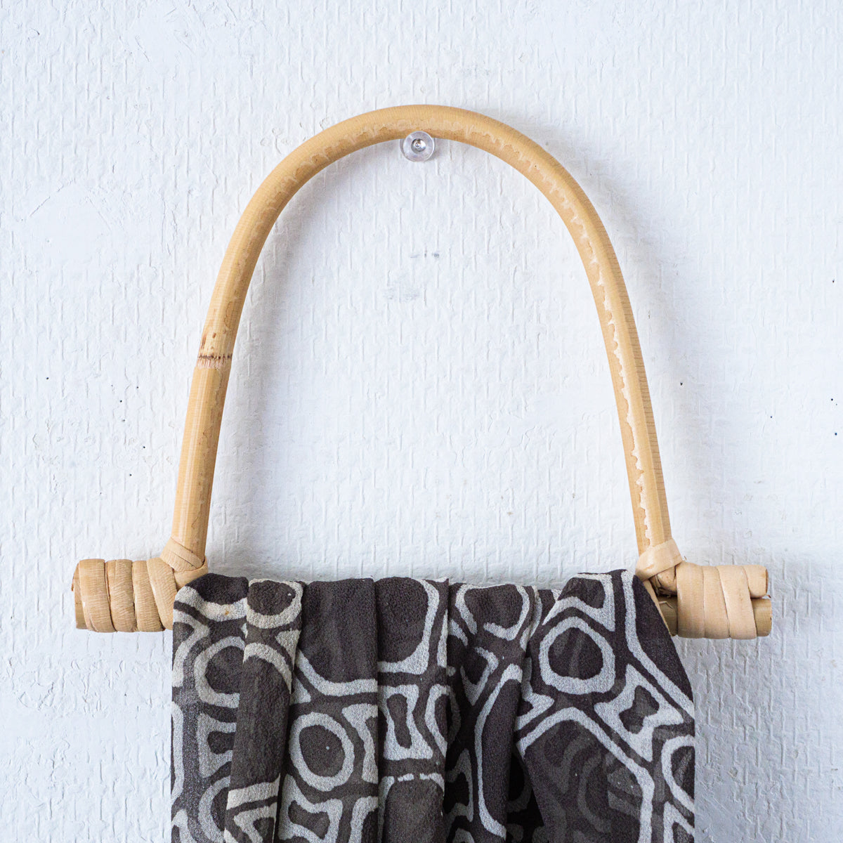 ラタン(籐)を火であぶって曲げて制作されているハンドメイドのスカーフハンガー。素朴な味わいがお部屋を彩ってくれます。また物作りをされる方は2つ購入して、カバンの持ち手としても使えます。