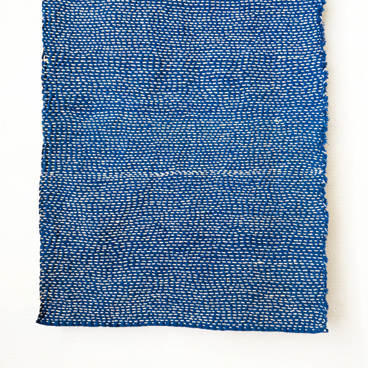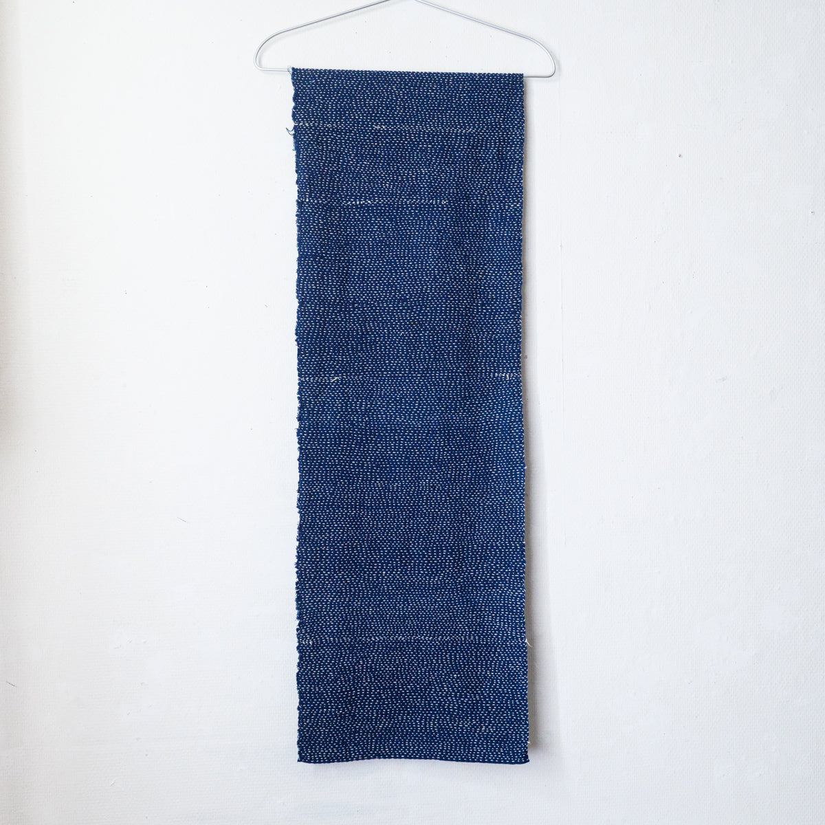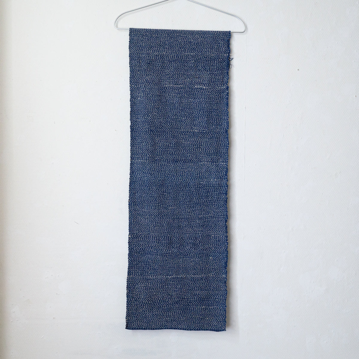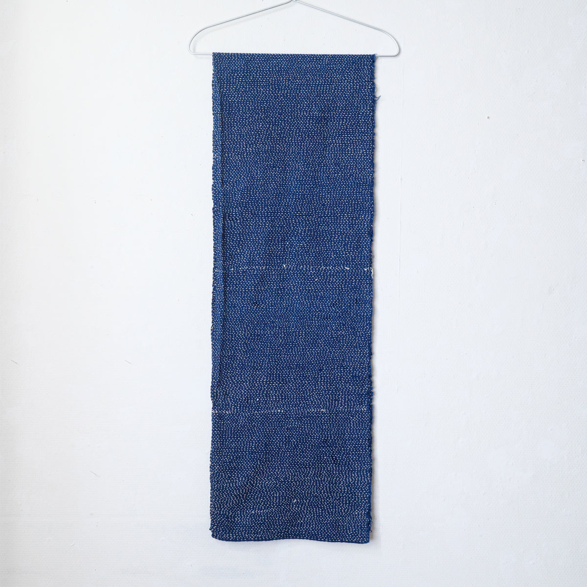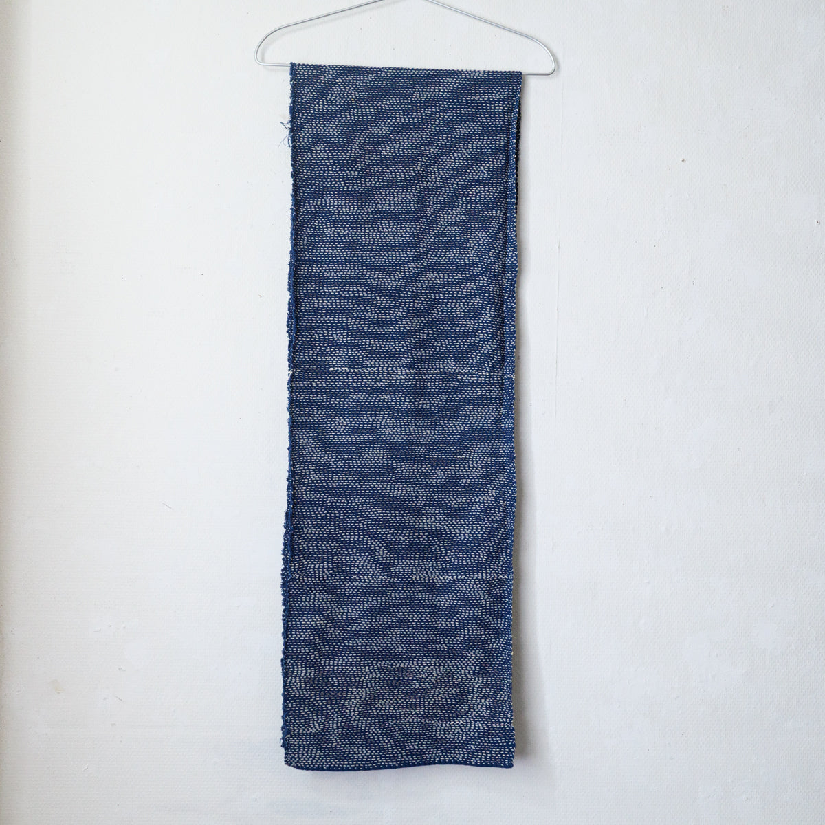 無数に刺し子が入ったストール。厚手なので、テーブルランナーなど敷物としてもお使い頂けます。手で刺したフリーハンドの跡が愛らしく感じます。
