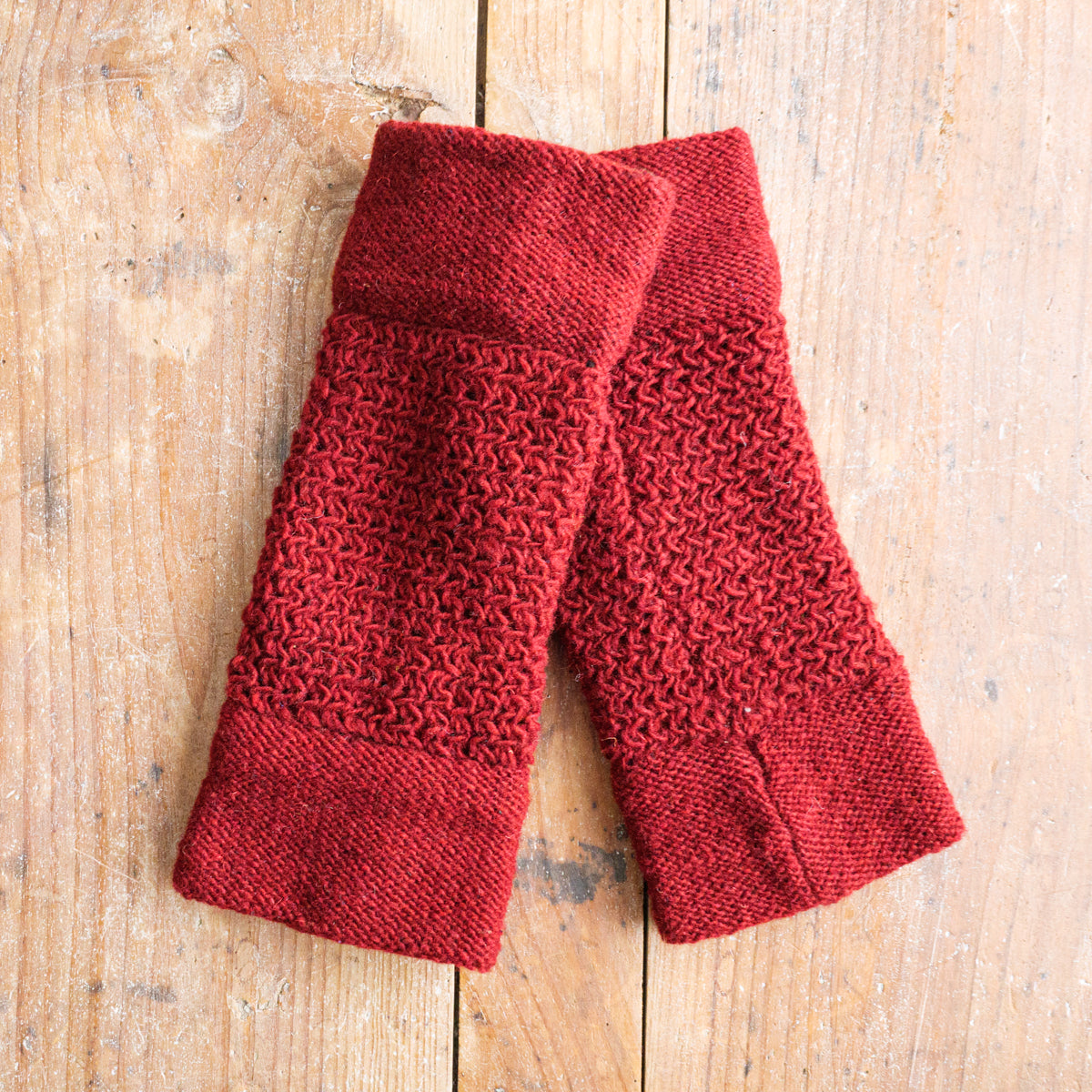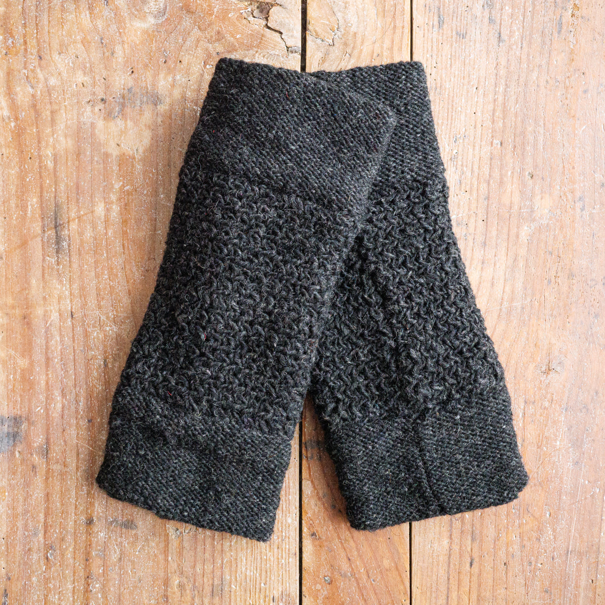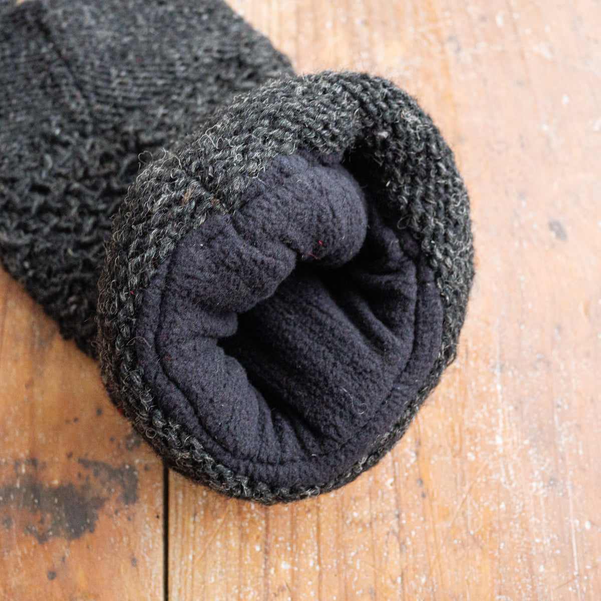 ニュージーランドのウールを使用し、ネパールで手編みされているレッグウォーマー。裏地はフェルト素材なのでスムーズで、