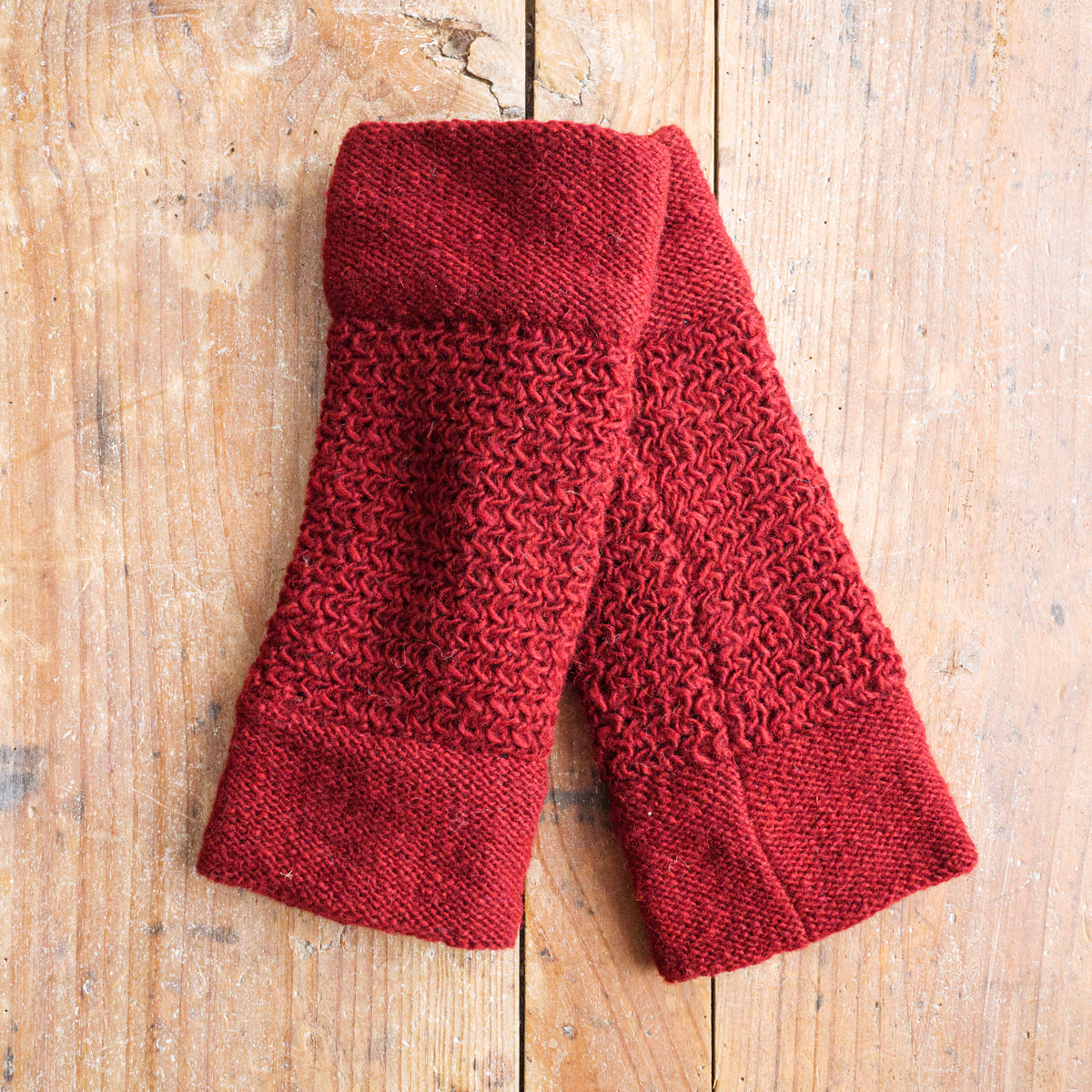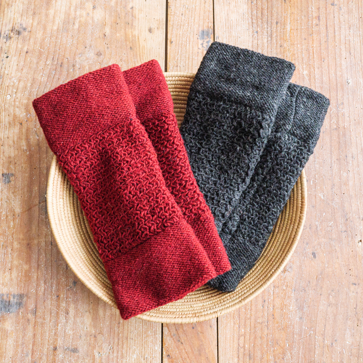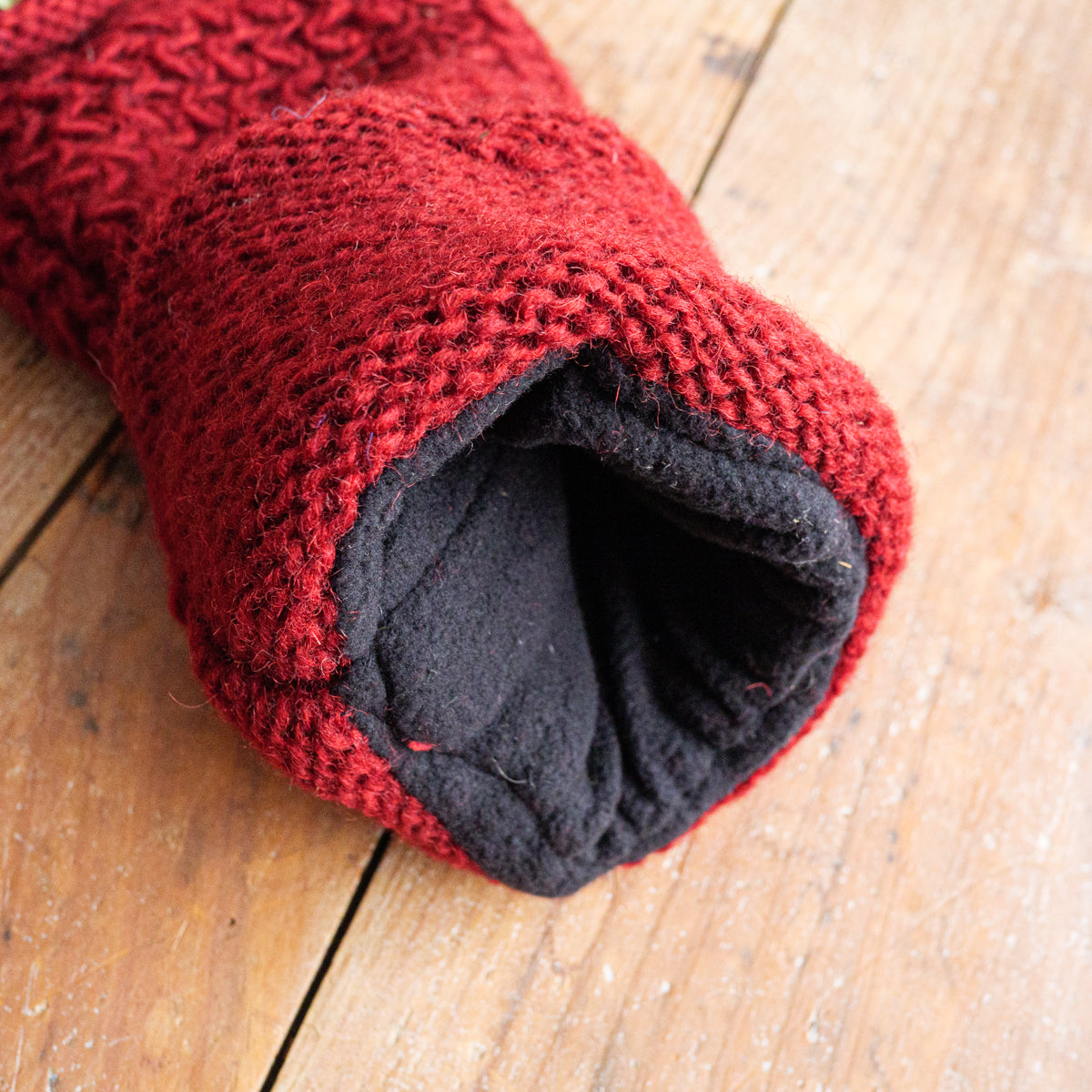 ニュージーランドのウールを使用し、ネパールで手編みされているレッグウォーマー。裏地はフェルト素材なのでスムーズで、