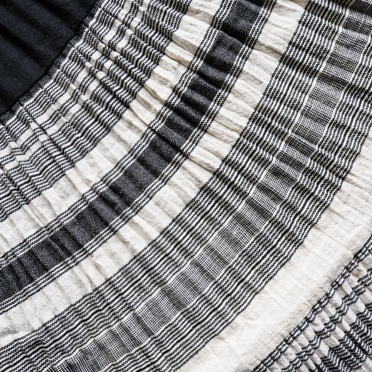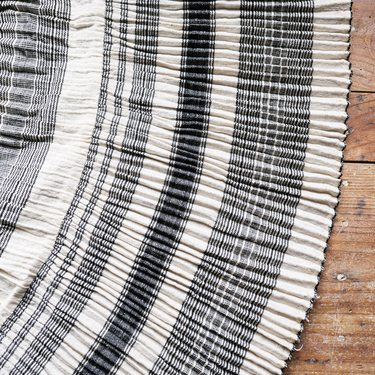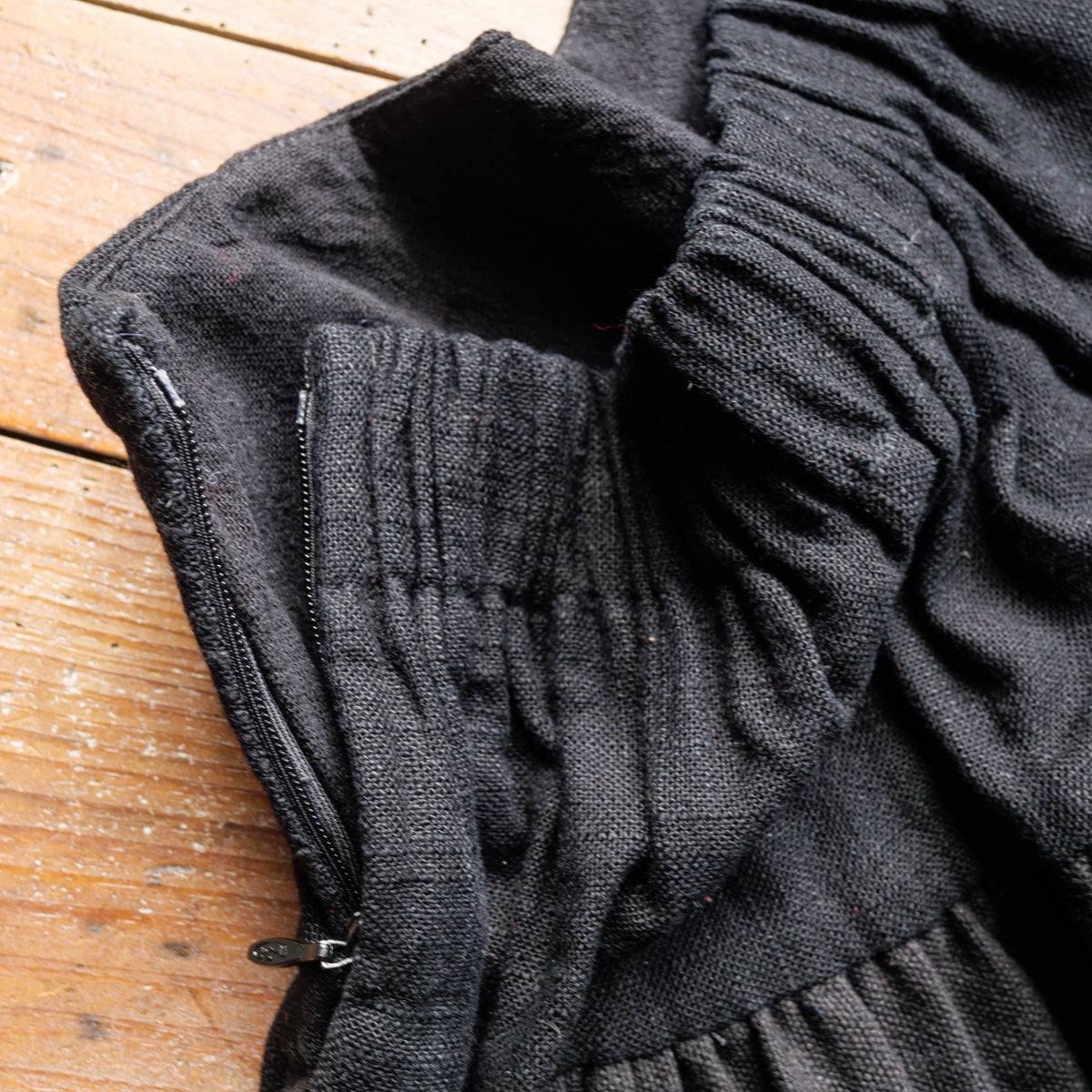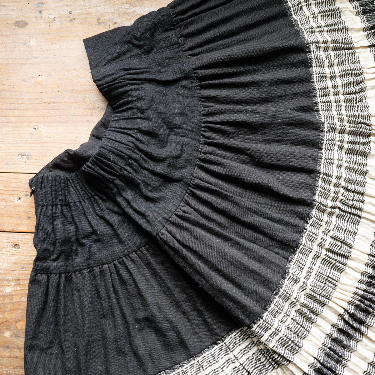 タイ少数民族モン族によるプリーツスカート、すべて広げると大きな美しい円形になり圧巻です。ウェストの腰部分にちょっとしたファスナーがあり、さらにゴムなので履きやすくフリーサイズになります。