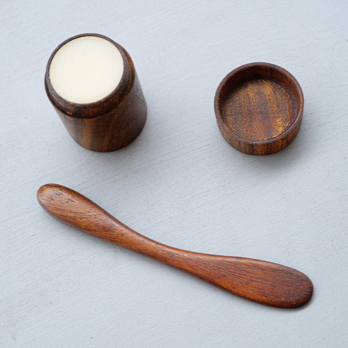 天然の蜜蝋を使ったリップクリーム。とても滑らかで芳醇な自然の香り。肌寒い季節に大人気の商品です。ローズウッドの木で出来たケースも嬉しいです。最後の画像にあるスパチュラも別売り(税込770円)でございます。