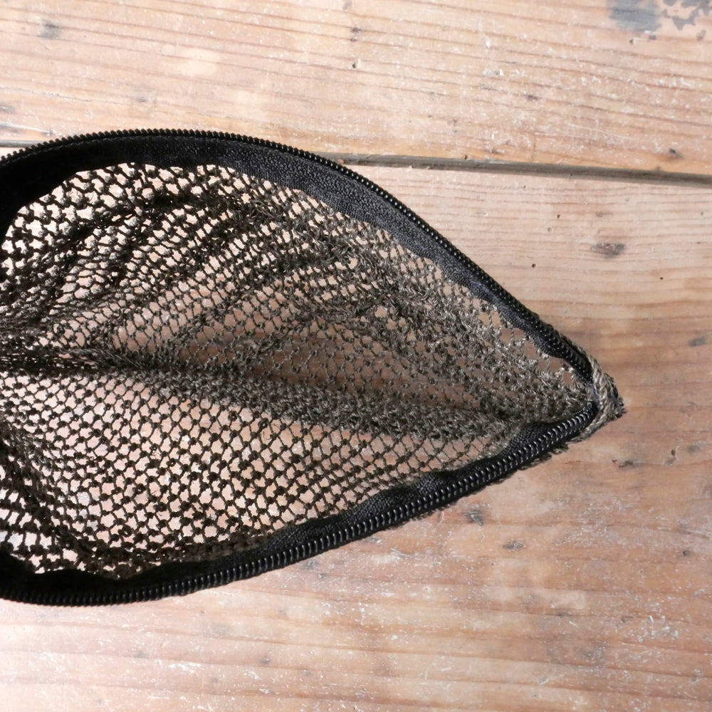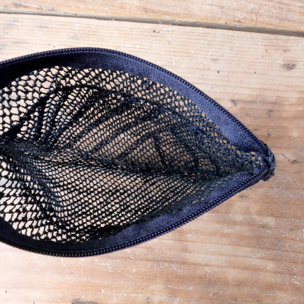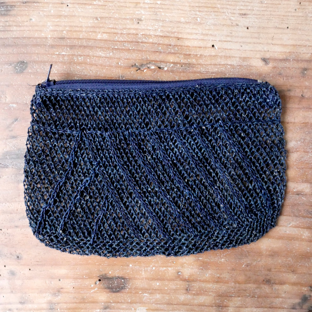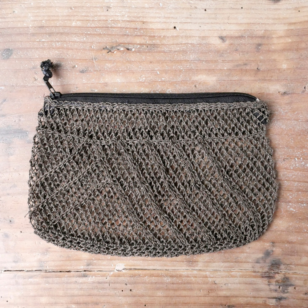 古くはラオスのカム族によって、魚の網を編むようにして作られていた、葛の繊維で出来たポーチ。シースルーでプリミティブな雰囲気がオシャレ。こちらは通常のスタンダードタイプとは異なる、斜めの網目模様が表面の片側に入っているタイプになります。中身が見えるので、バッグインポーチとして大変便利です。ファスナー部分にはタッセルが付いていたり、付いていなかったりと、その時々の入荷でまちまちです。ブラウン、ネイビーの2色展開で、すべて現地の植物で染められています。