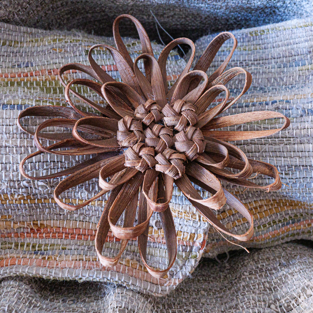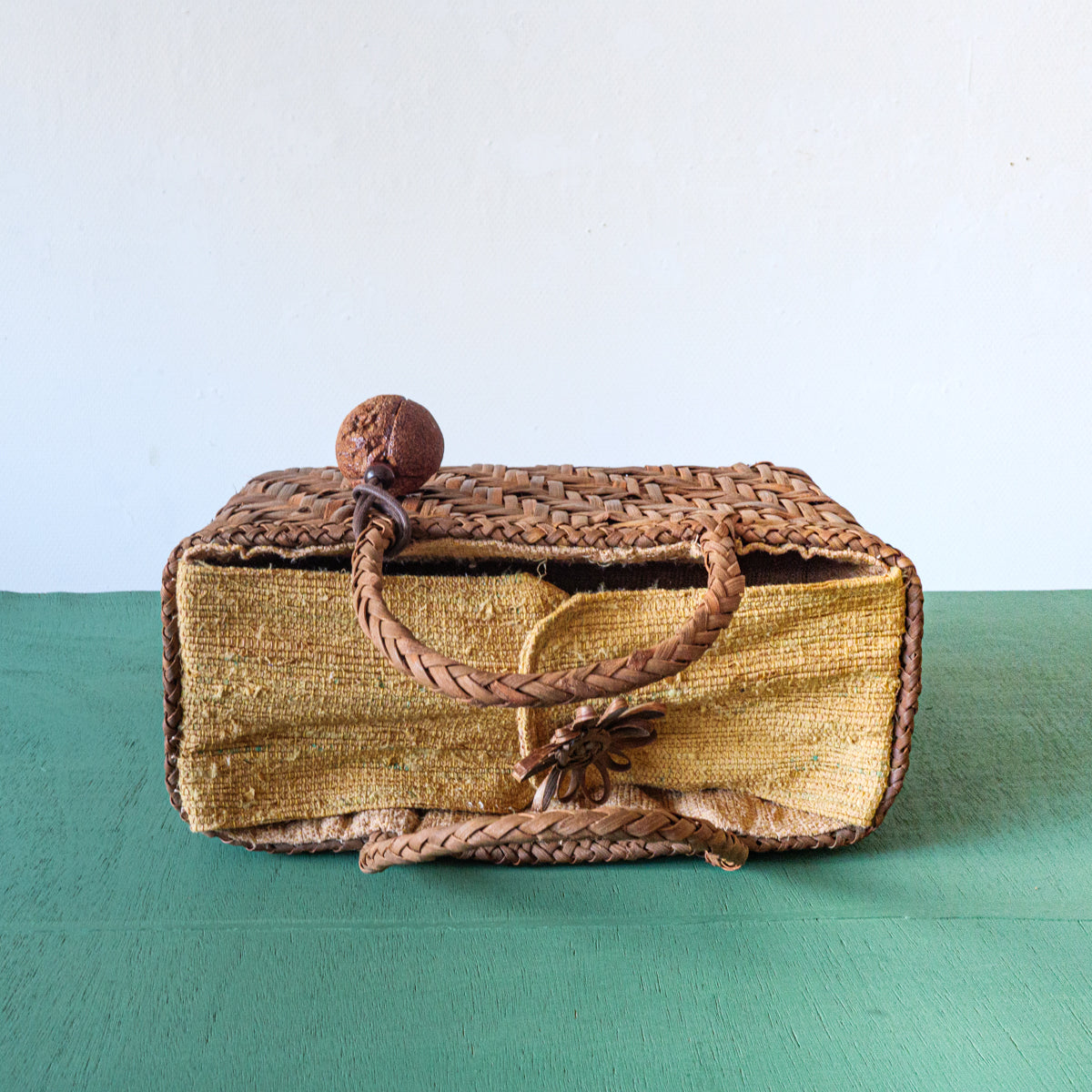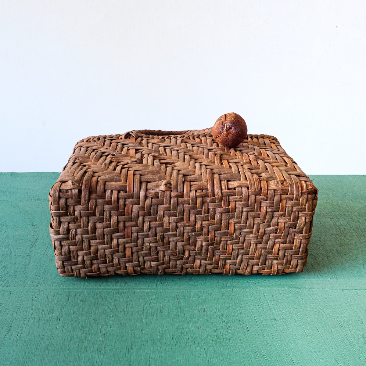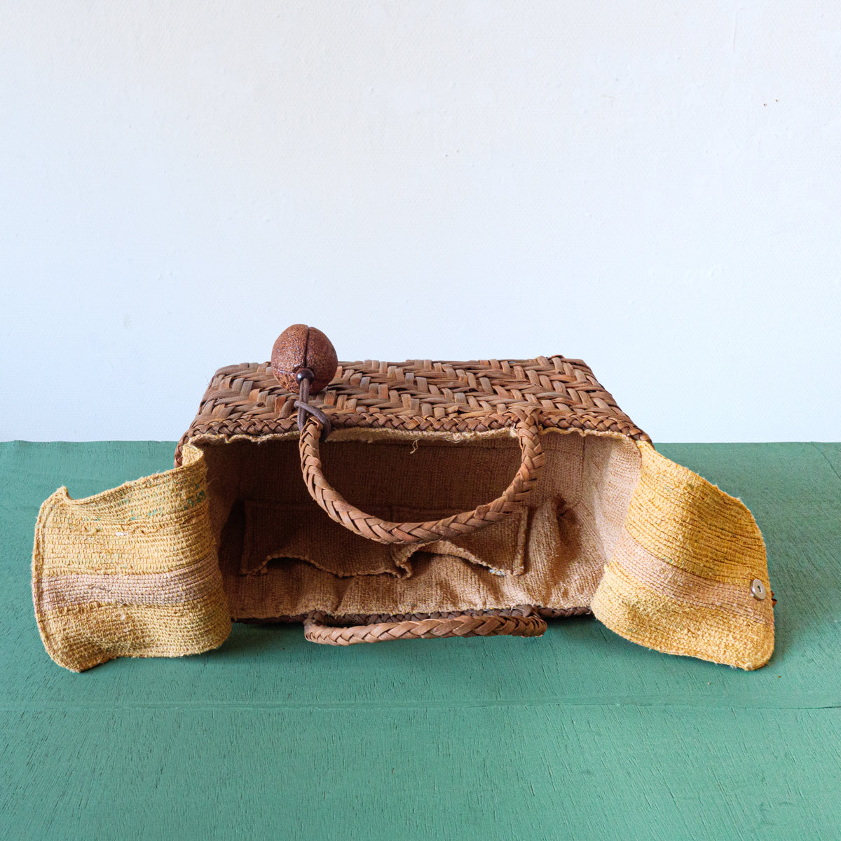 新潟の裂織り/山葡萄作家さん仁科俊子氏による山葡萄のバスケット。地元の新潟の素材を使用し、内側には裂織や柿渋染め生地の中敷付き。山葡萄のカゴは親子3代使用できると言われる程丈夫で、使用するごとに、手の脂でとても美しい飴色に経年変化をしてきます。