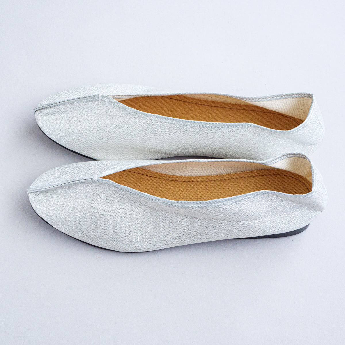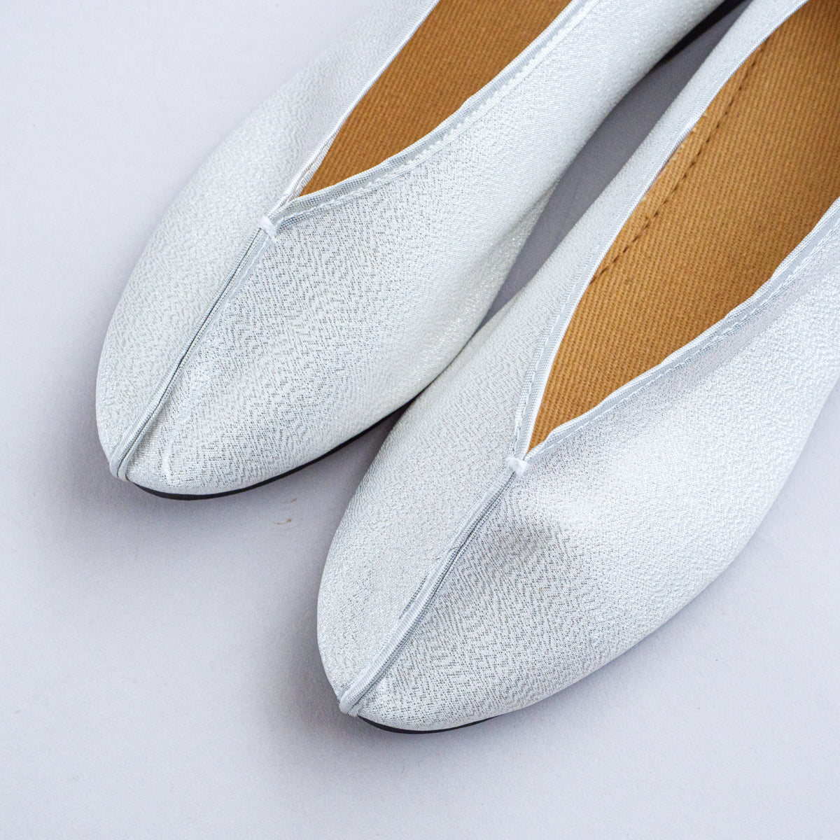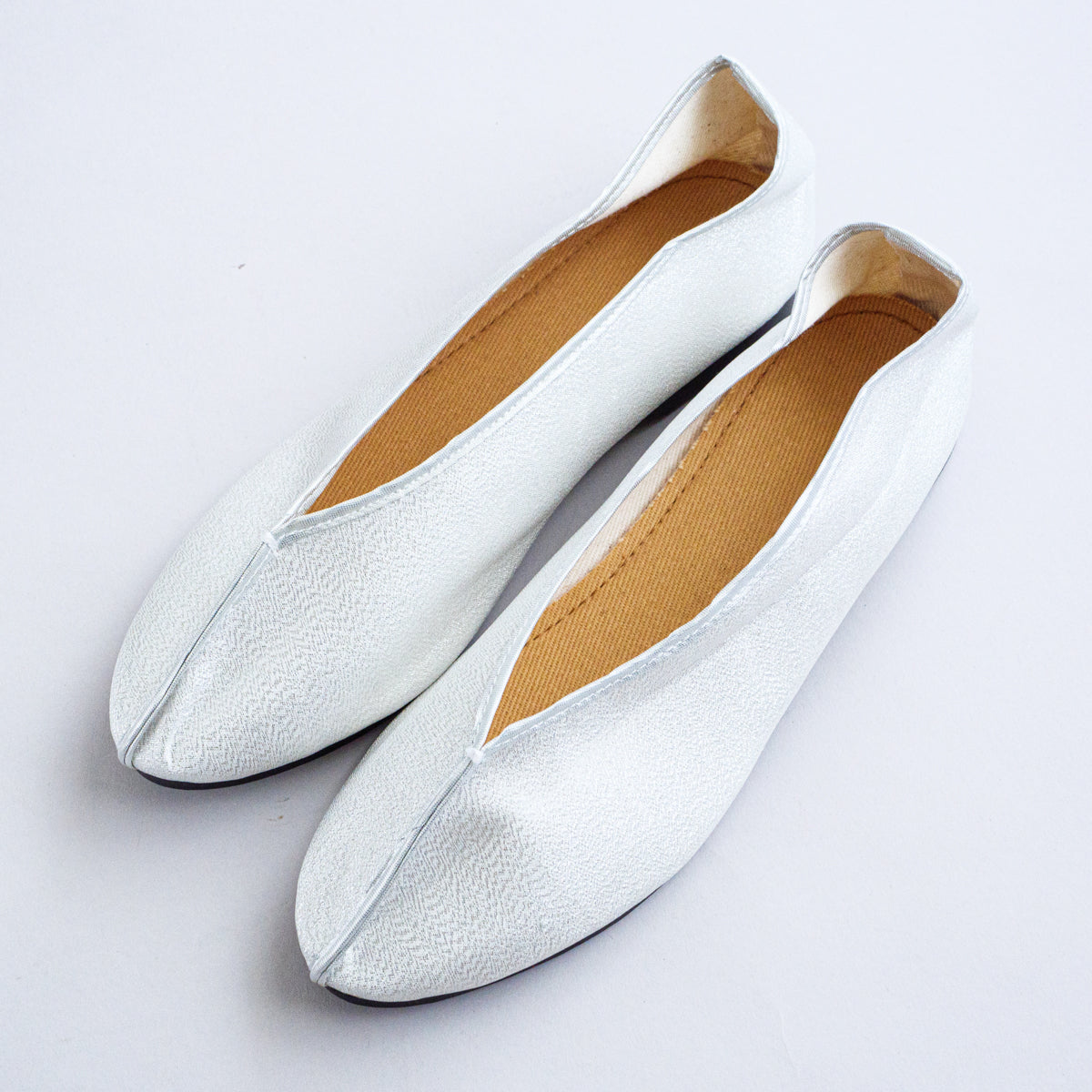 当店で大人気の台南刺繍靴の工房による当店別注シリーズ。こちらはまるでスパンコールが埋め込まれたようなキラキラした光沢のある生地になり、ホワイトシルバーのようなお色です。シューズの構造は通常の刺繍靴と同じで、一見バレエシューズのような可愛さです。足のつま先から甲の部分にかけて小さめの作りなので、サイズで迷われている方は1cm大きめのものをお選びいただき、少し大きい場合は中敷きで調整して頂くと夏は素足で、肌寒い時期はタイツなどで合わせていただけます。