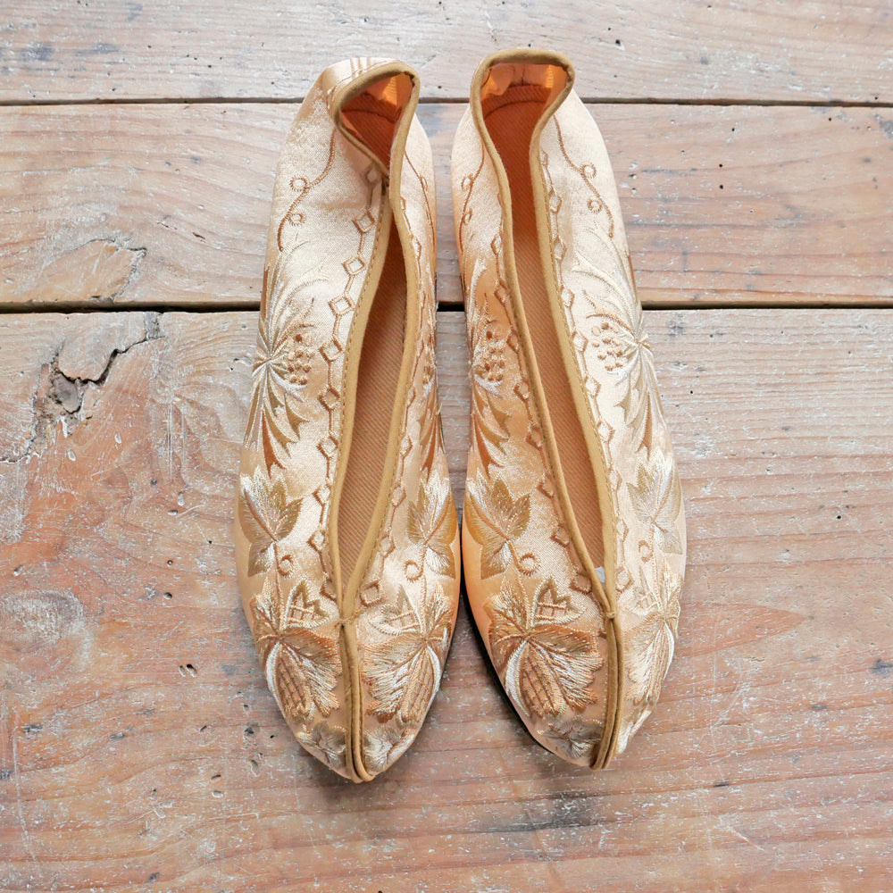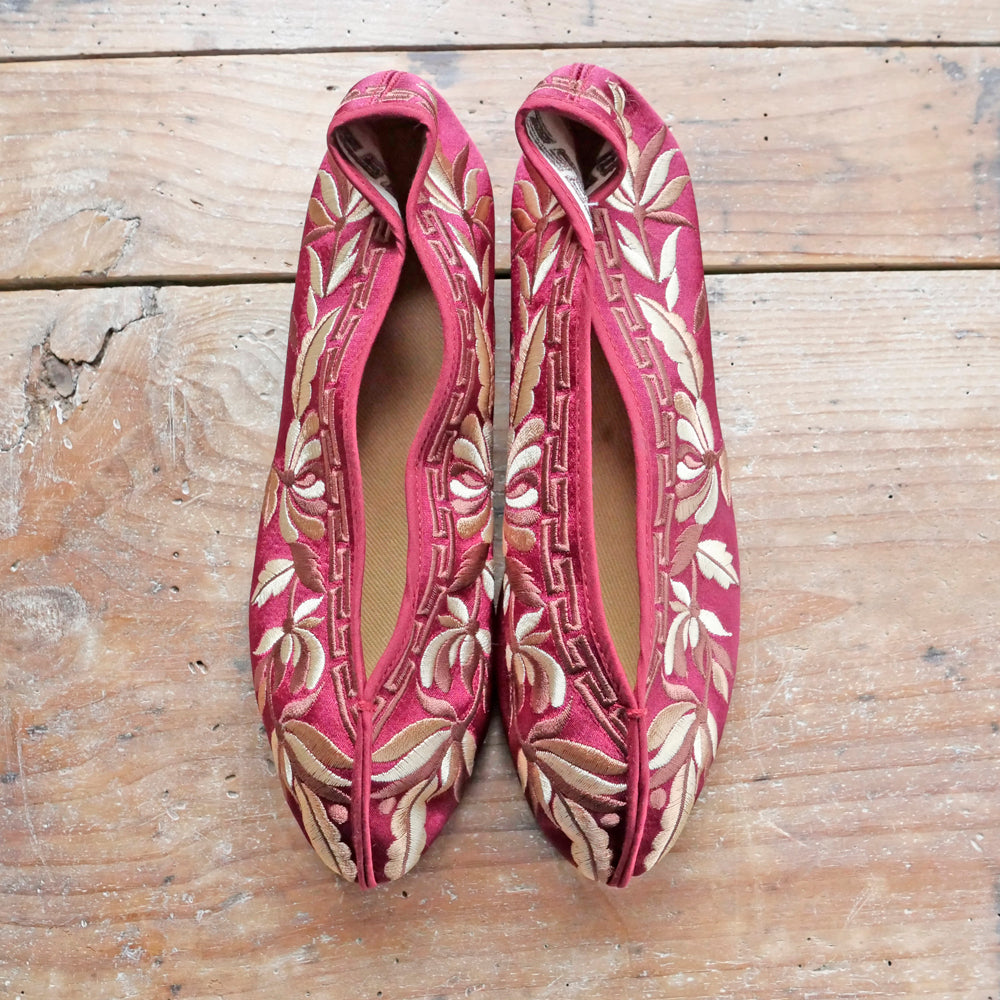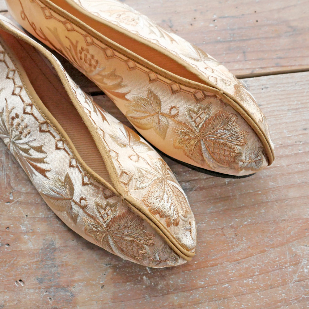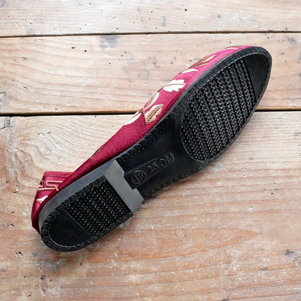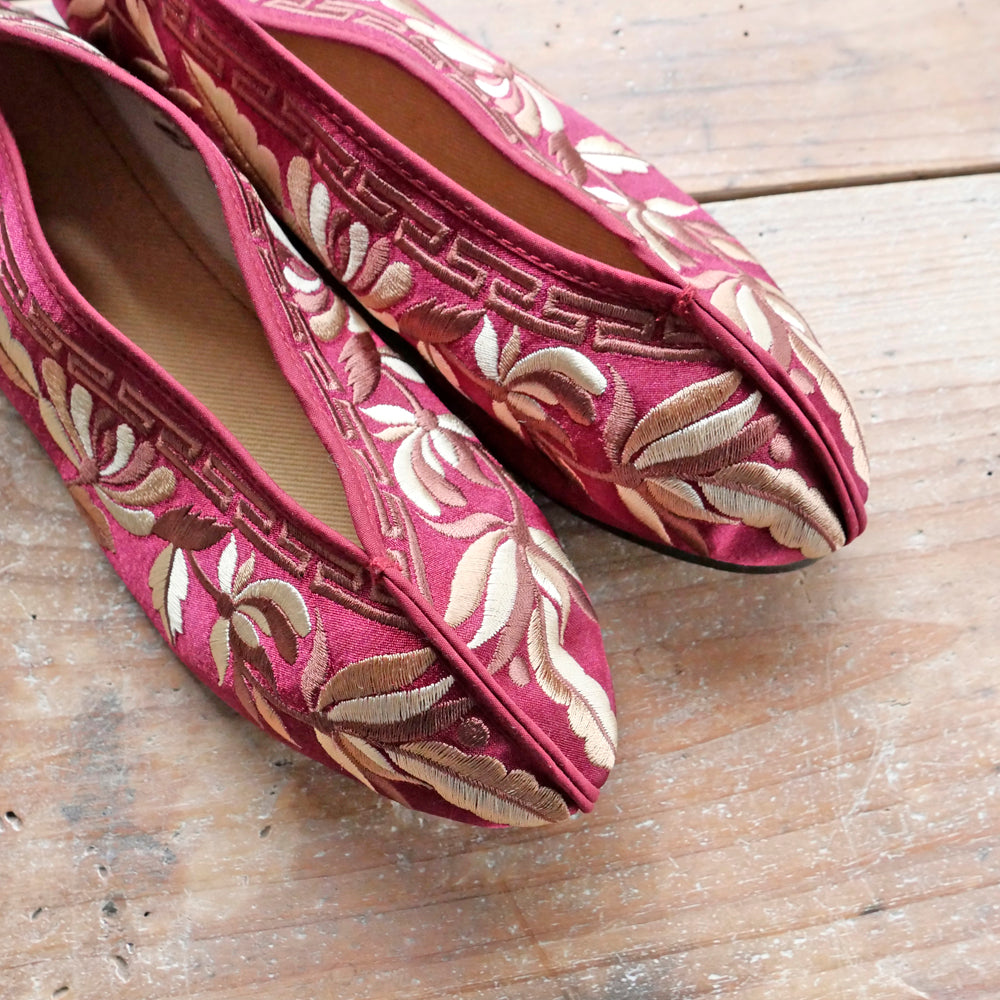台湾南部の街、台南の工房にて生地から切って手作業により作られています。底がペッタンコ(かかと15mm)になっている所が可愛らしく、ソール部が丈夫な作りなので長い間履いて頂けます。足のつま先から甲の部分にかけて小さめの作りなので、サイズで迷われている方は、0.5cmから1cm大きめのものをお選びいただき、少し大きい場合は中敷きで調整して頂くと夏は素足で、肌寒い時期はタイツや靴下などとも合わせていただけます。