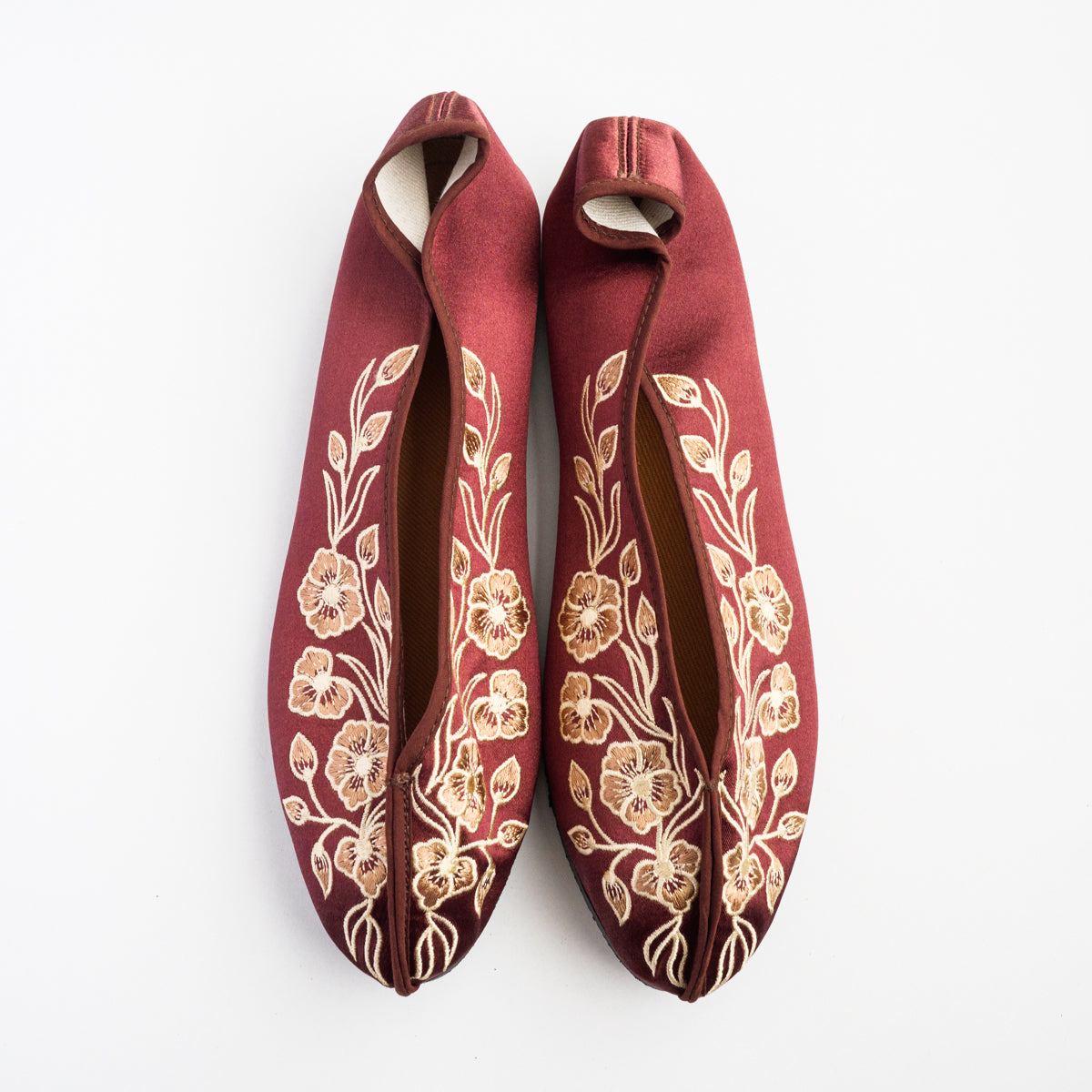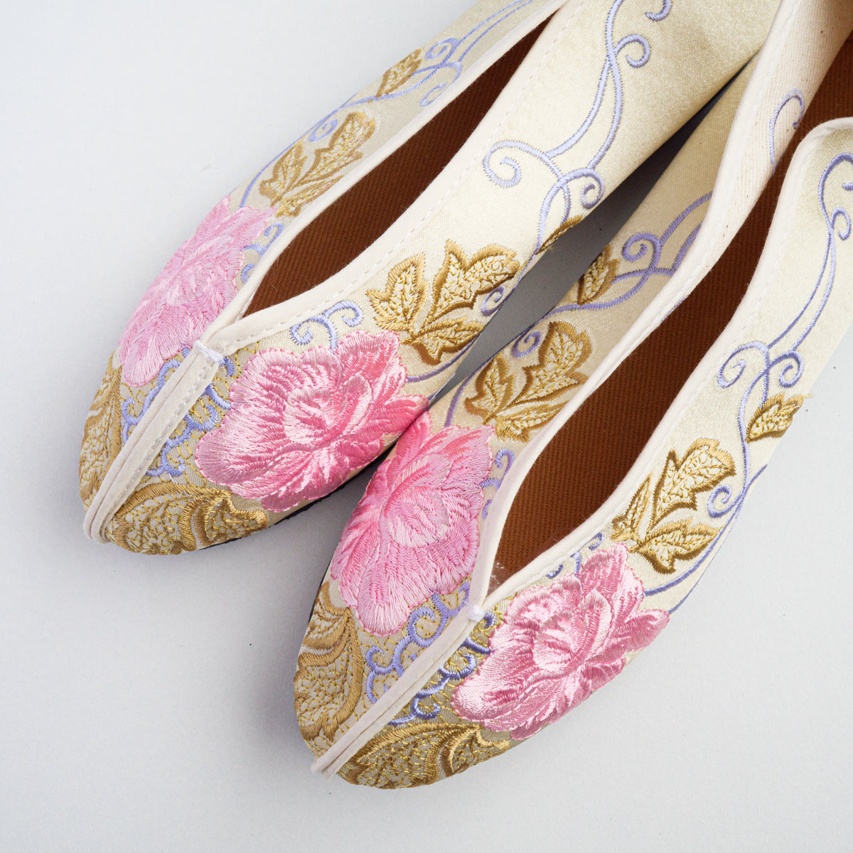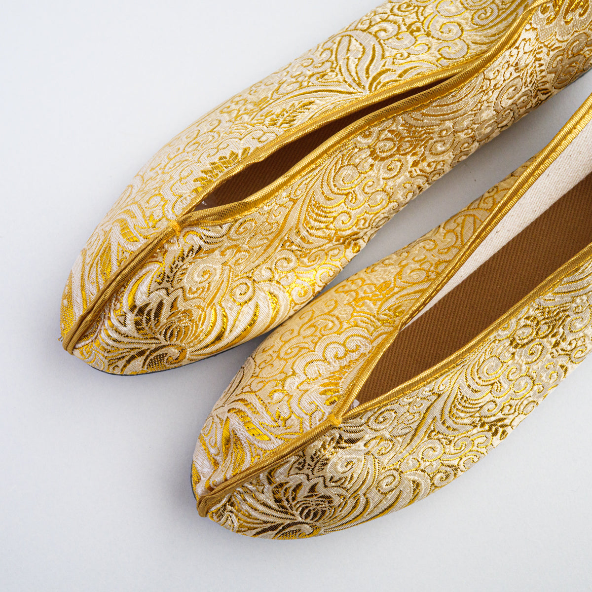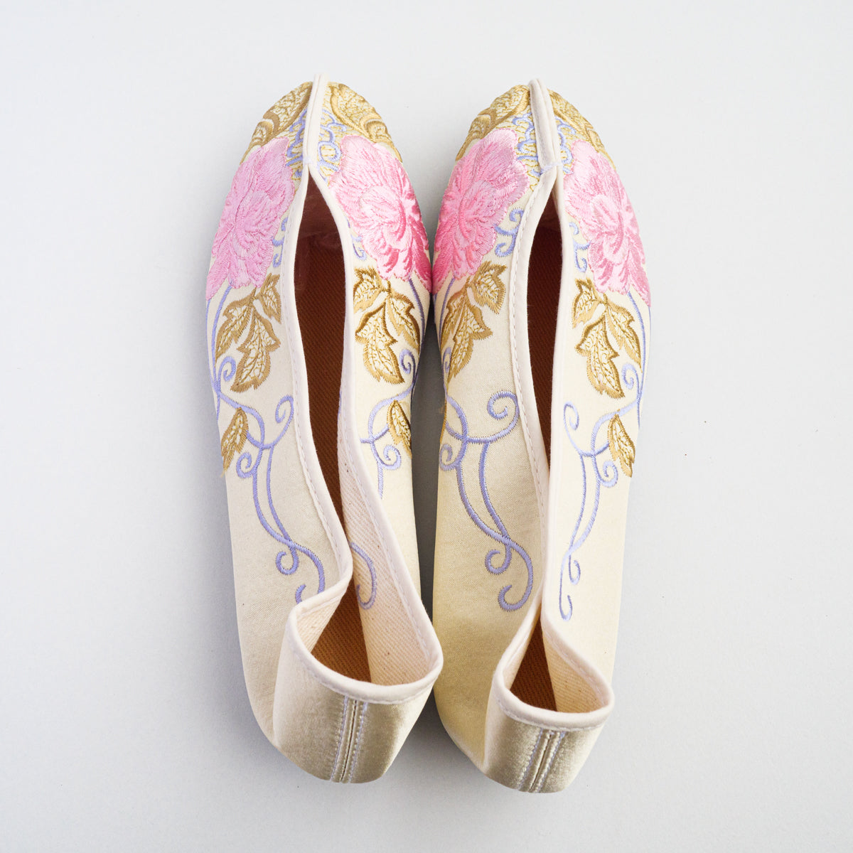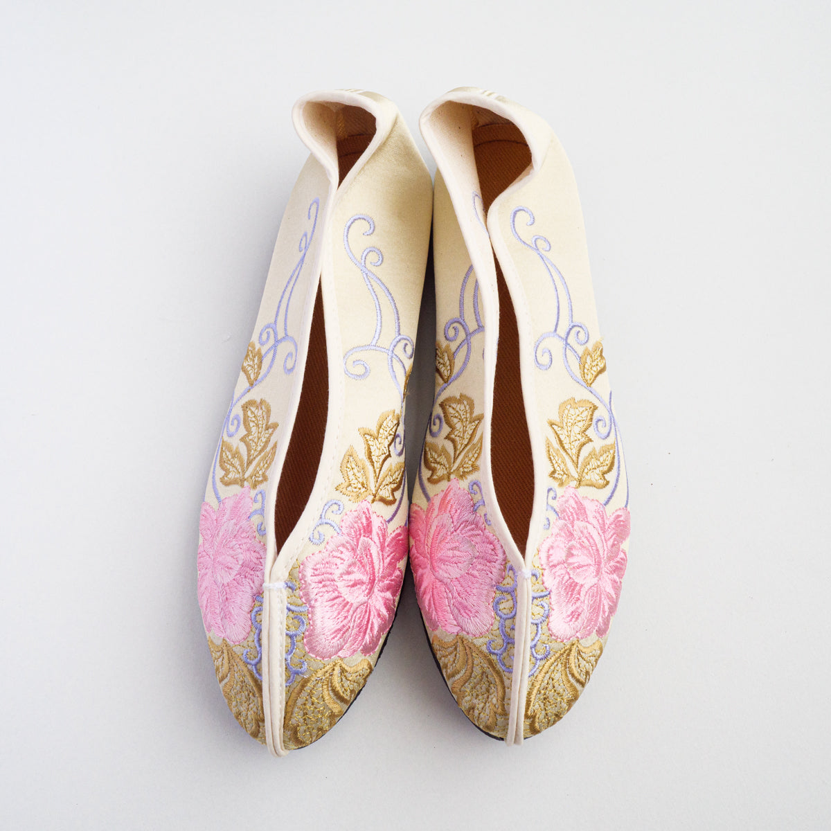 台湾南部の街、台南の工房にて生地から切って手作業により作られています。底がペッタンコ(かかと15mm)になっている所が可愛らしく、ソール部が丈夫な作りなので長い間履いて頂けます。足のつま先から甲の部分にかけて小さめの作りなので、サイズで迷われている方は、0.5cmから1cm大きめのものをお選びいただき、少し大きい場合は中敷きで調整して頂くと夏は素足で、肌寒い時期はタイツや靴下などとも合わせていただけます。