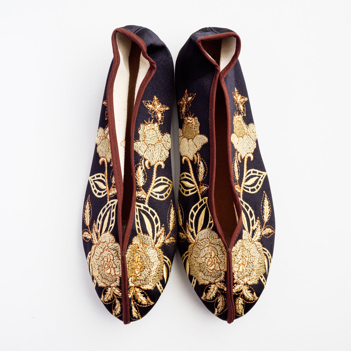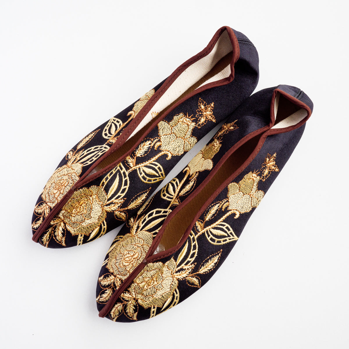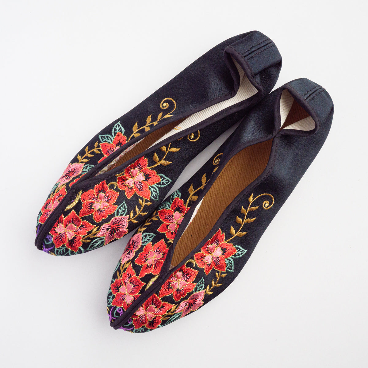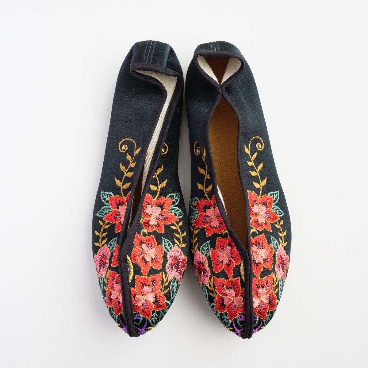 台湾南部の街、台南の工房にて生地から切って手作業により作られています。底がペッタンコ(かかと15mm)になっている所が可愛らしく、ソール部が丈夫な作りなので長い間履いて頂けます。足のつま先から甲の部分にかけて小さめの作りなので、サイズで迷われている方は、0.5cmから1cm大きめのものをお選びいただき、少し大きい場合は中敷きで調整して頂くと夏は素足で、肌寒い時期はタイツや靴下などとも合わせていただけます。