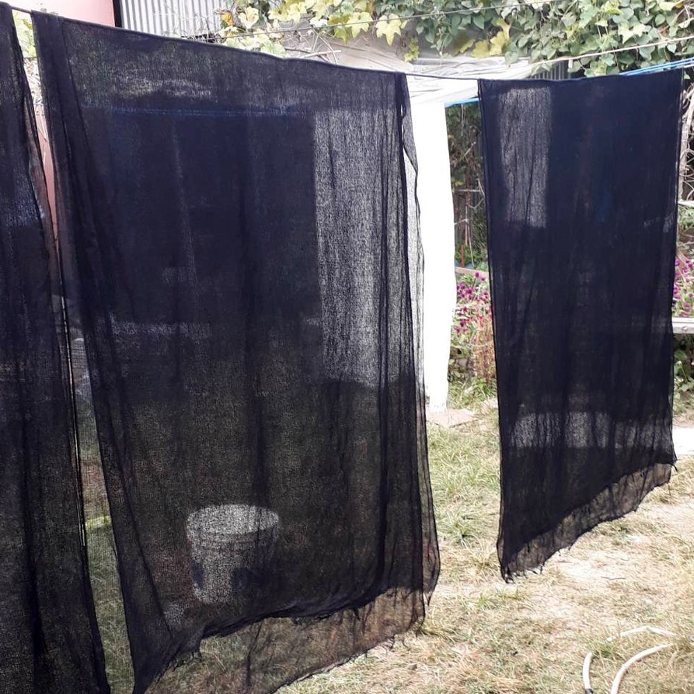 ※ 天然染め製品につき、入荷毎に色味が異なりますが、現在入荷したばかりの物(2024年12月8日)は、外で藍を乾かしている画像にあるような濃いめの藍のお色になります。また手織り製品なので、織斑がある場合がございますが、風合いとしてお楽しみ下さい。とても繊細な作りにつき、おカバンにしまう際などは袋に入れて頂く等、引っ掛けないようにお気をつけてご使用ください。
