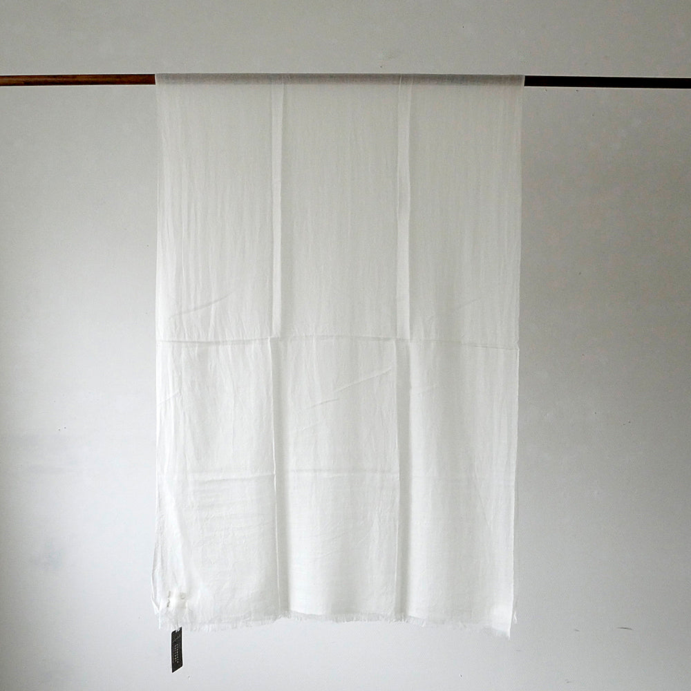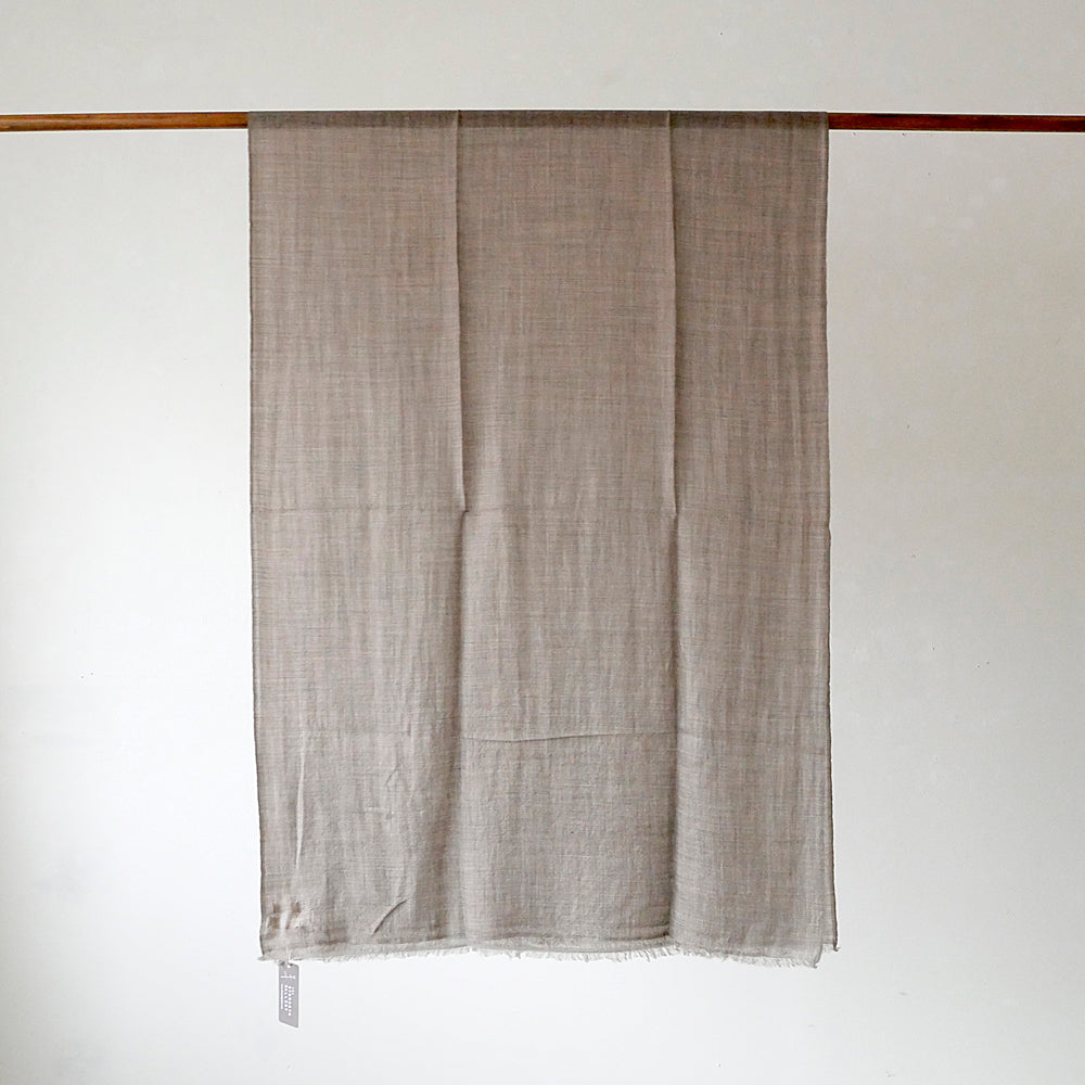 とても繊維が細く弾力性があり、極上の柔らかさを誇る高級素材である手織りのカシミヤのストール。ヒマラヤ山脈に生息する山羊の毛を使用したもので、こちらは原毛そのもののお色で透き通るような薄手の軽量のタイプ。よく見ると細かく菱形模様が手織りされているのが分かります。真冬前後の涼しい季節に重宝します。保温性や保湿性に優れているのも嬉しいです。お洗濯の際にはドライクリーニングに出してください。