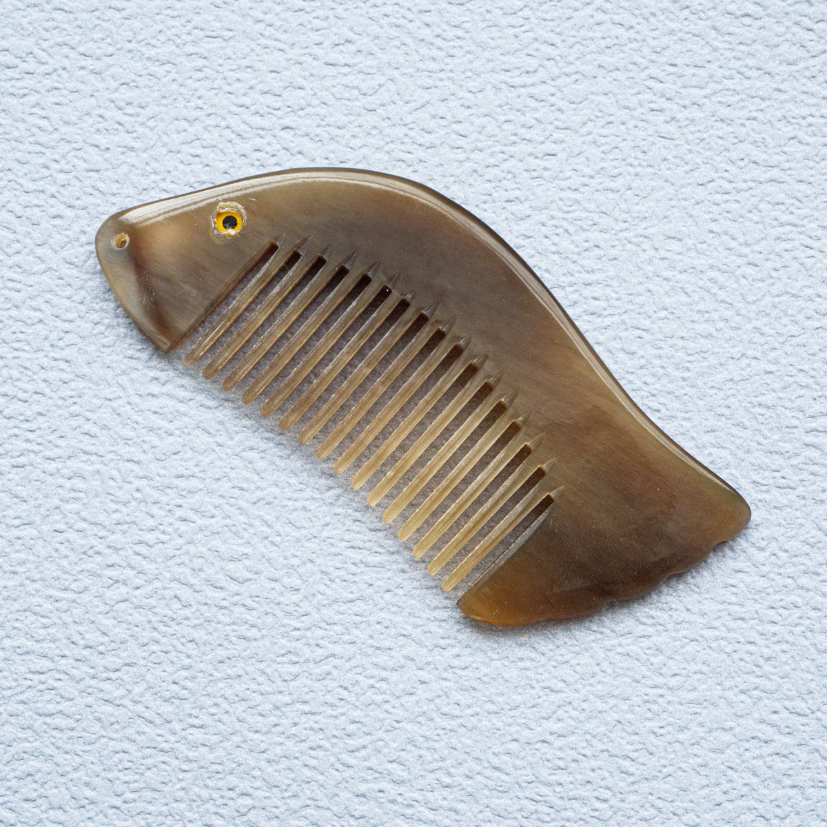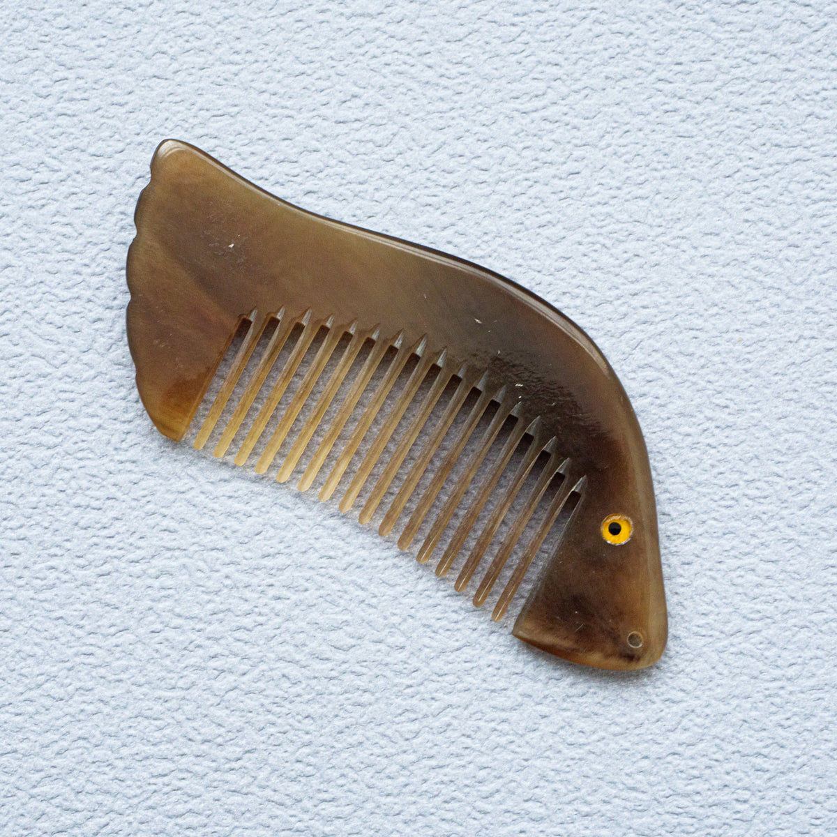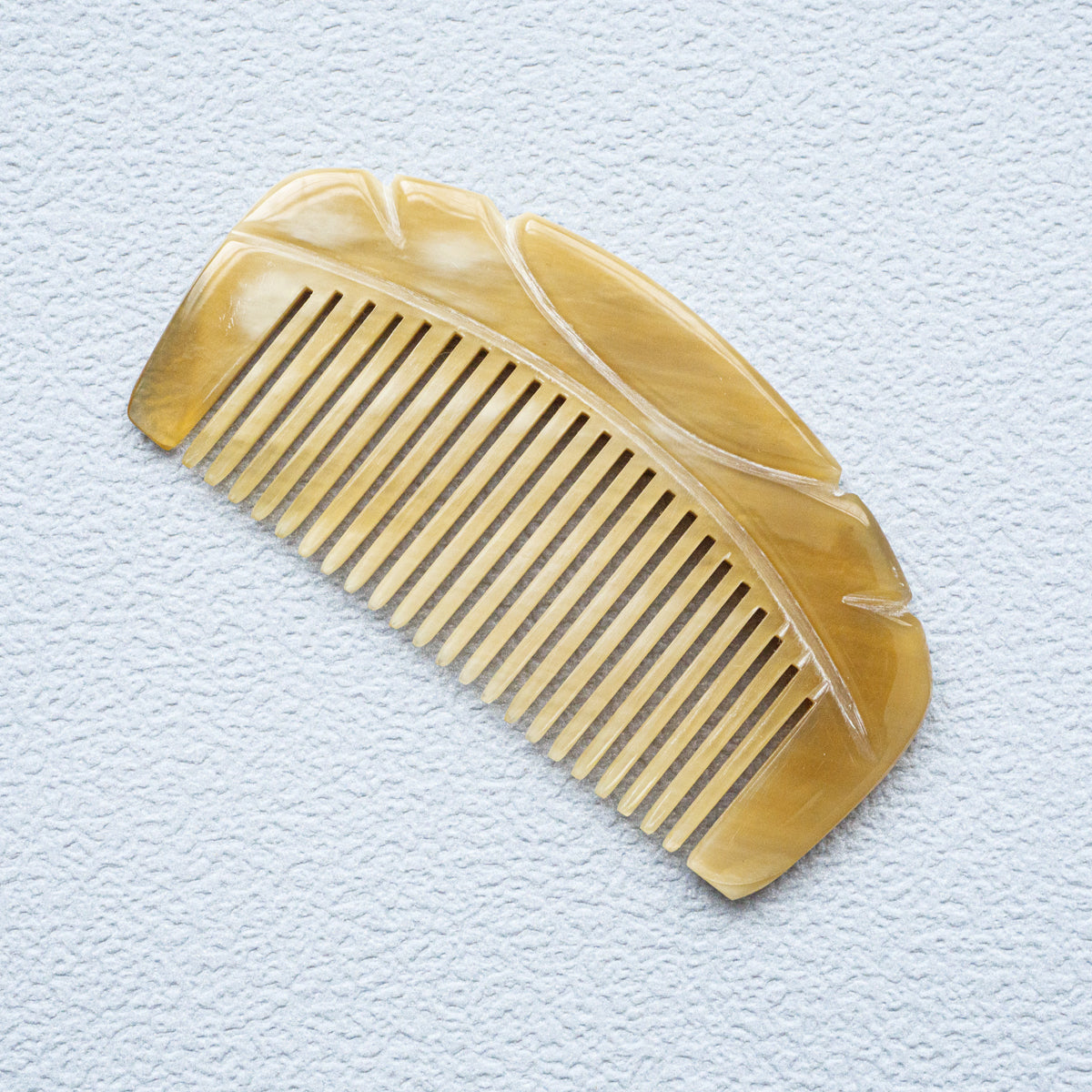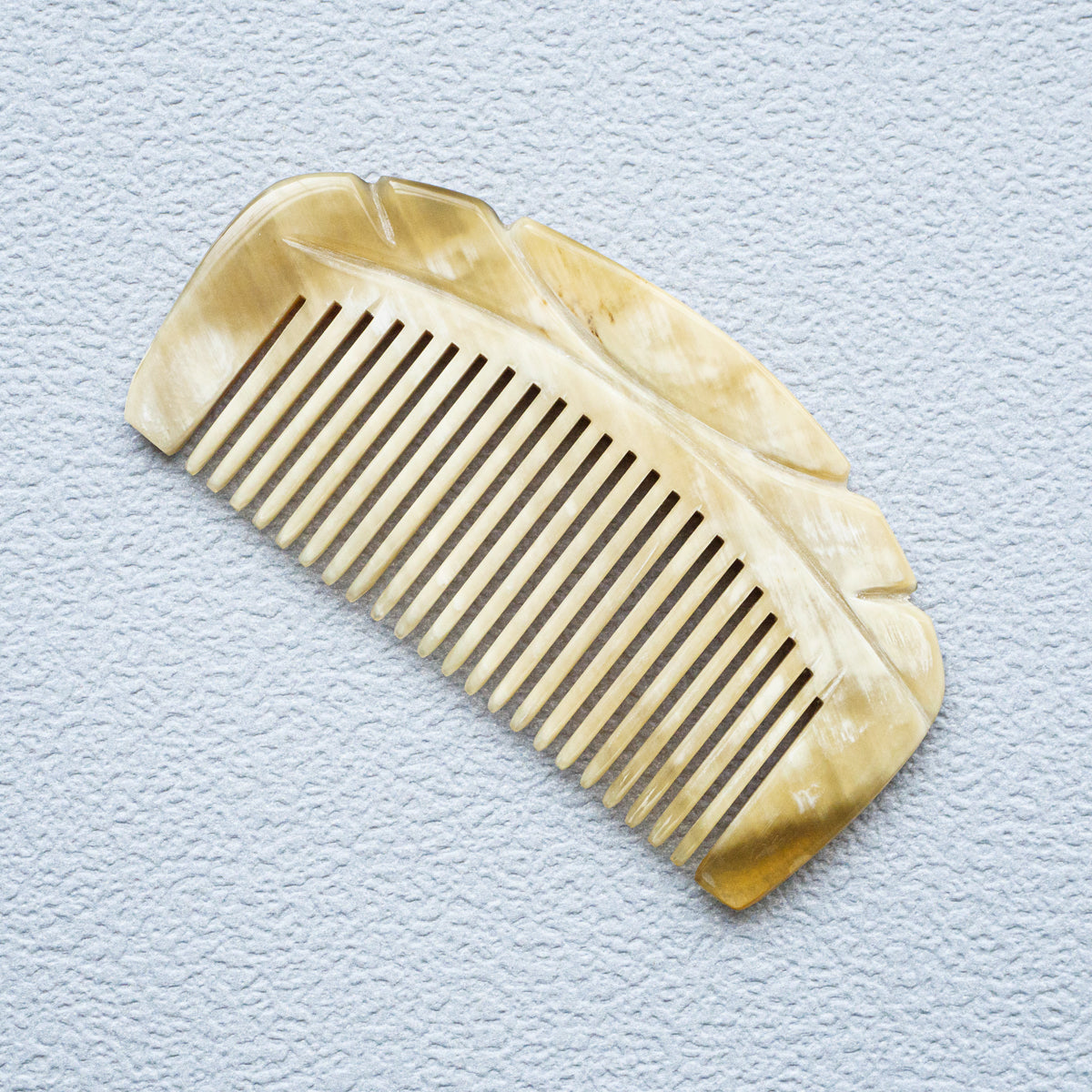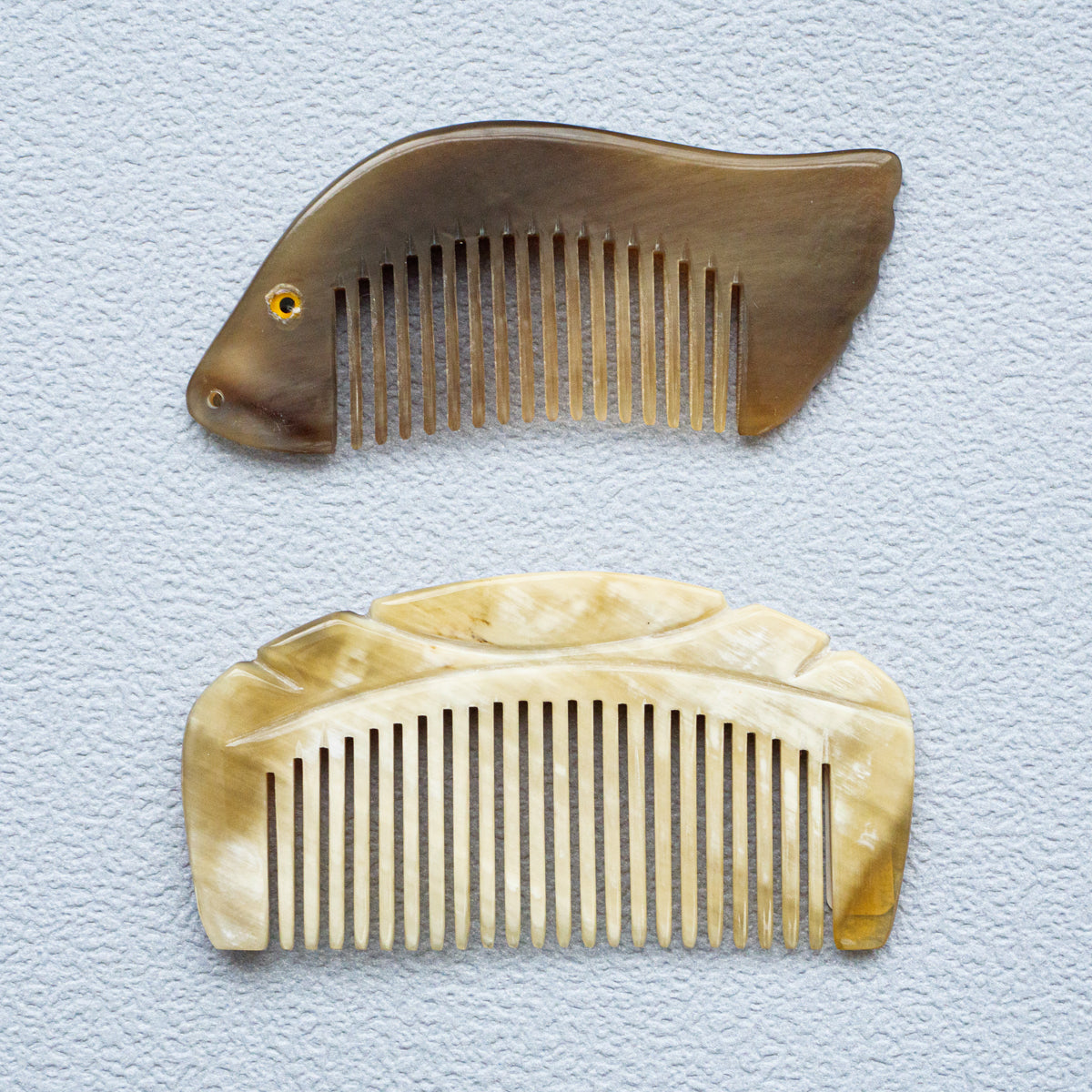 水牛の角を整形し作られたポーチにも入る小型サイズの櫛。水牛の角は漢方にも使われている材質で、現地では頭皮の血行も良くなると言われている理にかなった製品。どれも水牛の角そのもののお色なのですが、一つとして同じものがございません。