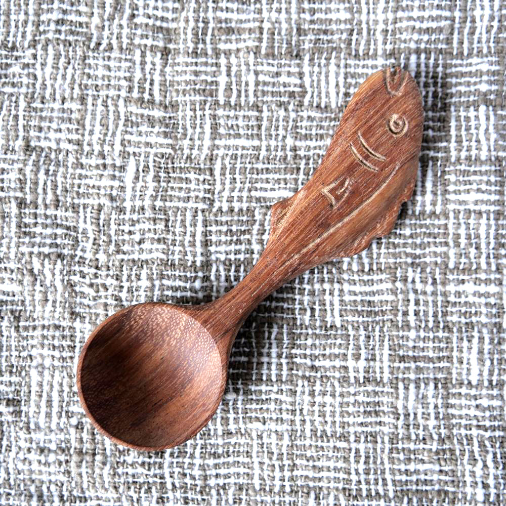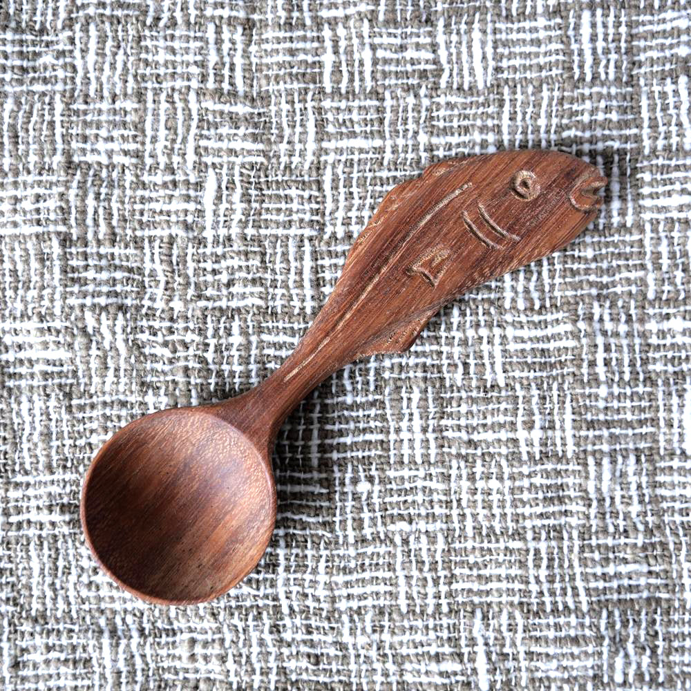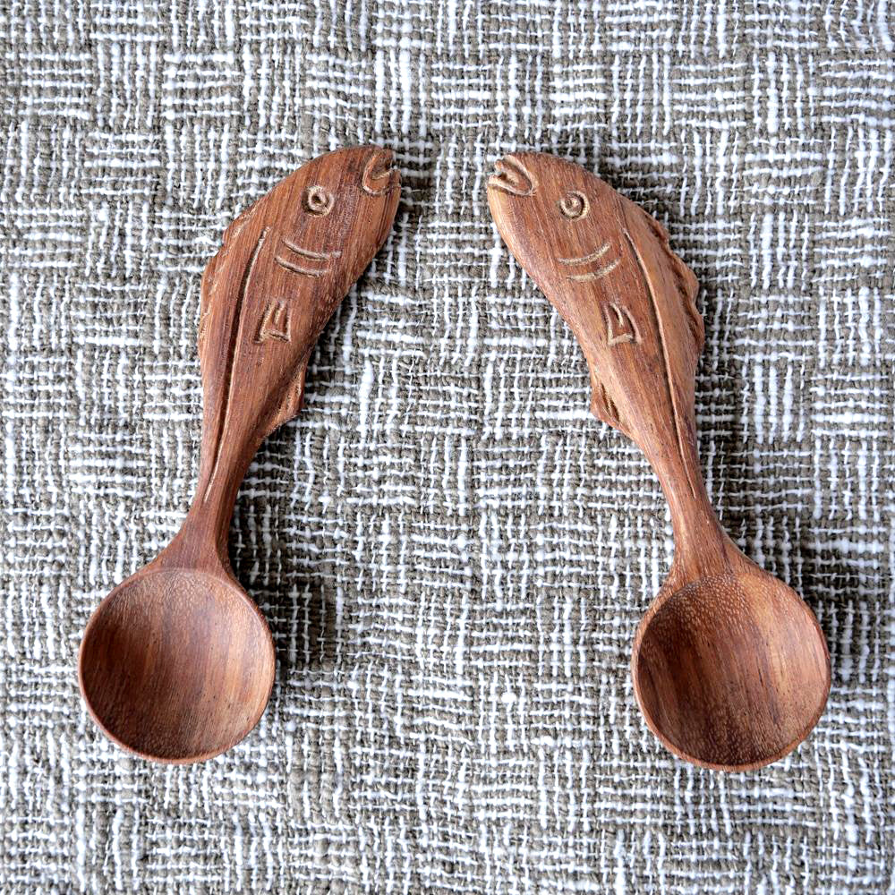 大人気のフラワー木製スプーンに新たなデザインが仲間入りしました!それもお魚型で、お写真のように右を向いたもの、左を向いたものの2種類がございます。右を向いているタイプが右利き用な感じはしますが、どちらも使えないことはないので使いやすそうな方を選んでください。ドウシェ材は明るいオシャレな色合いで、とても硬くて丈夫な木材です。とても可愛らしいので、キッチンに抜群のインテリア効果をもたらし、使用するたびに笑みがこぼれそうです。1つとして同じ木目や色味がございません。洗ったあとはすぐに乾いたフキンで吹いてあげて、時々自然由来のオイルを塗ってあげると長持ちします。砂糖や塩などパウダー状の調味料用にオススメです。