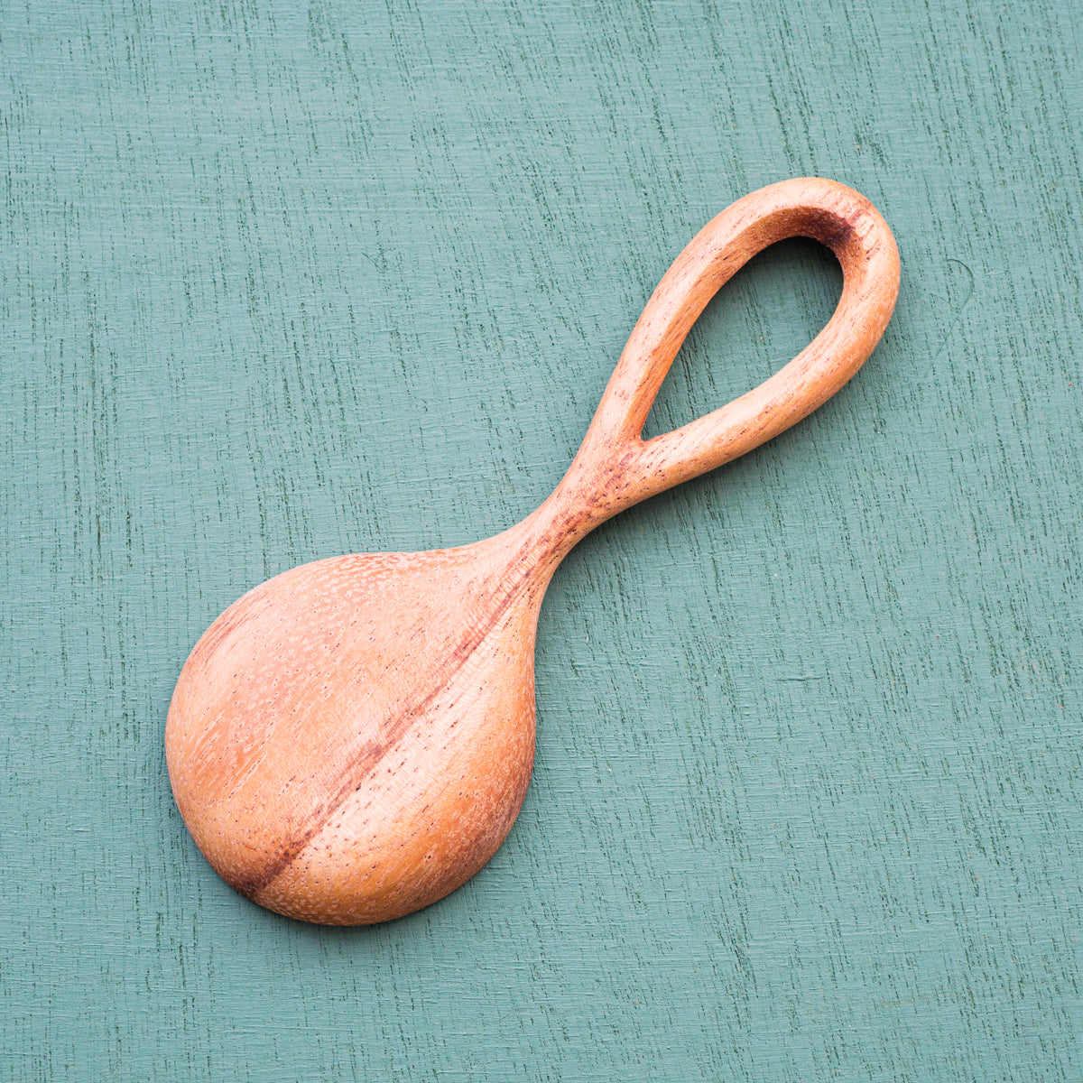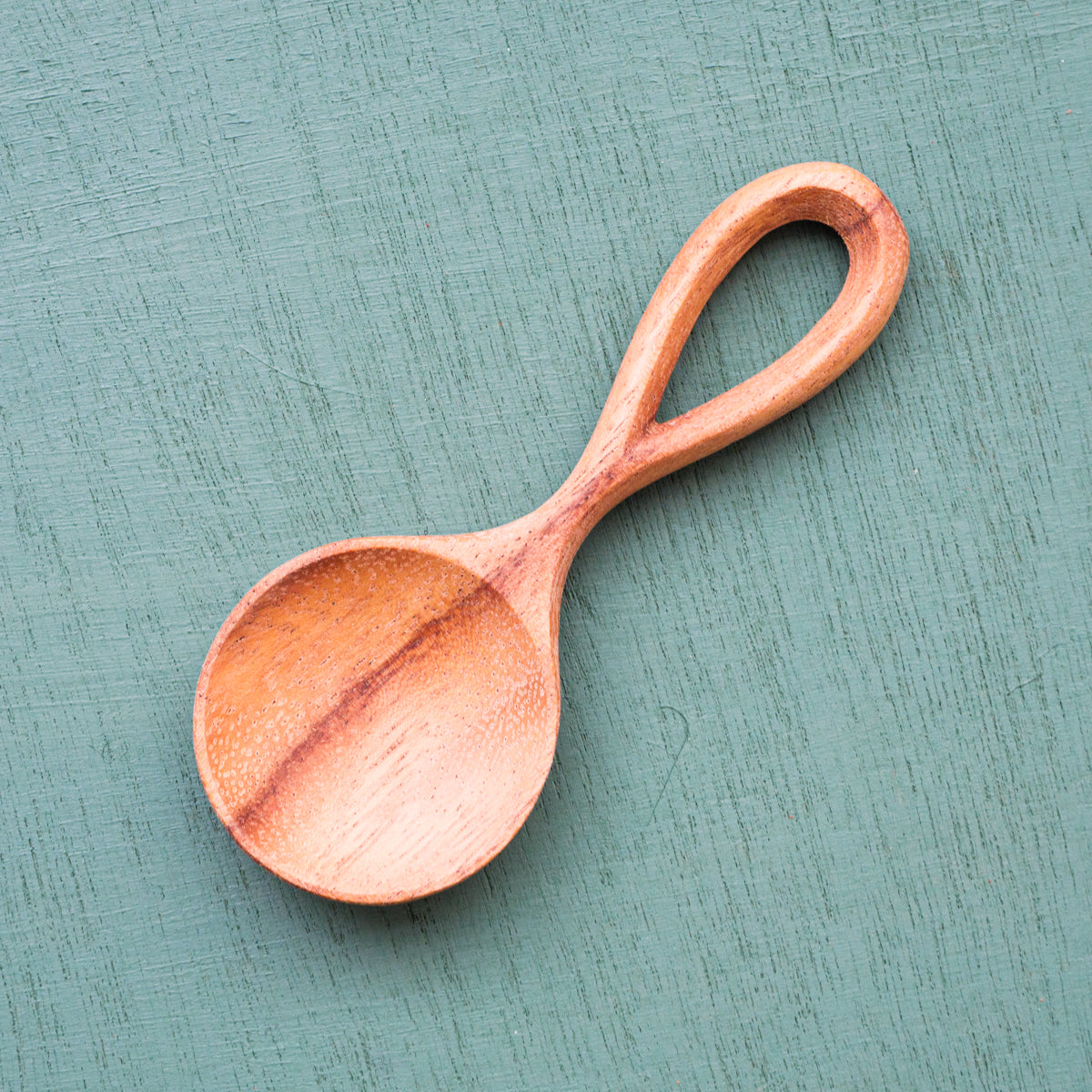 美しい曲線を描いたドウシェ材のスプーン。ドウシェ材は明るいオシャレな色合いで、とても硬くて丈夫な木材です。とても可愛らしいので、キッチンに抜群のインテリア効果をもたらし、使用するたびに笑みがこぼれそうです。洗ったあとはすぐに乾いたフキンで吹いてあげて、時々自然由来のオイルを塗ってあげると長持ちします。砂糖や塩などパウダー状の調味料用にオススメです。