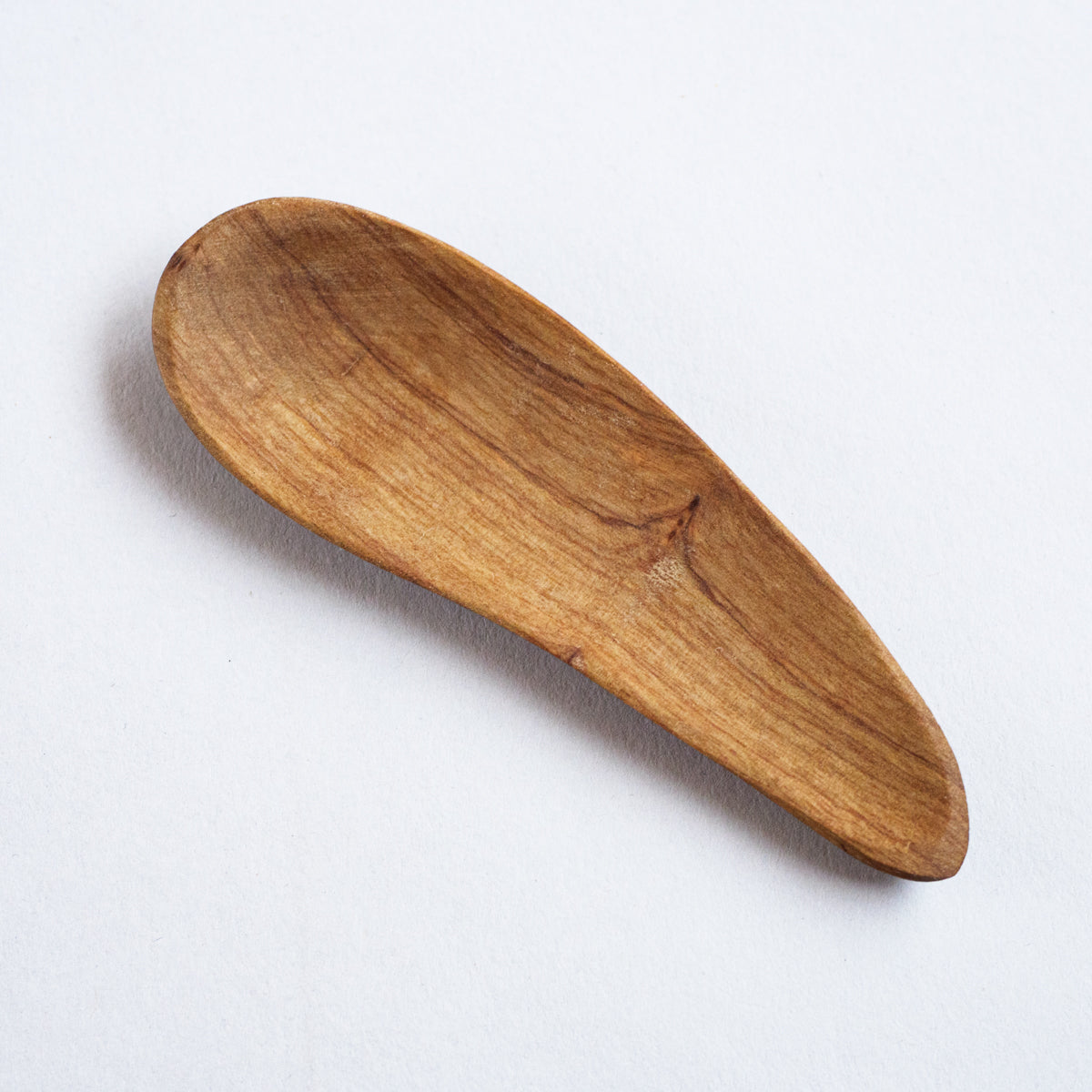 茶匙のような可愛らしい形状のオリーブの木を削り出して作られたスプーン。こちらはオリーブオイルなどの自然由来の油を塗ると、乾燥を防ぎ長持ちします。