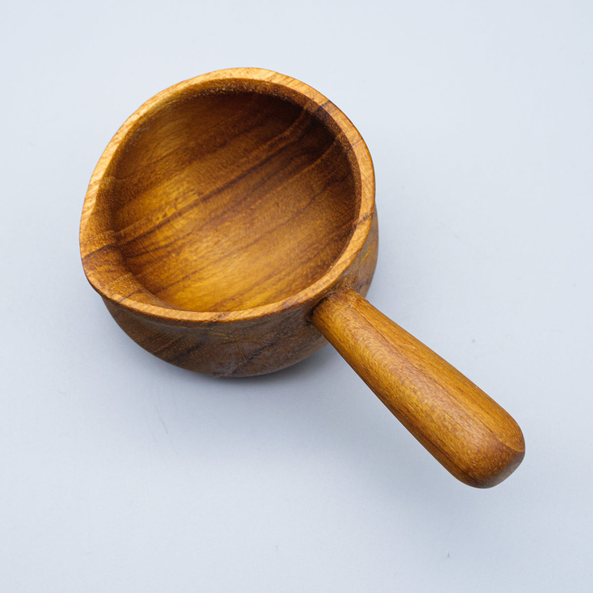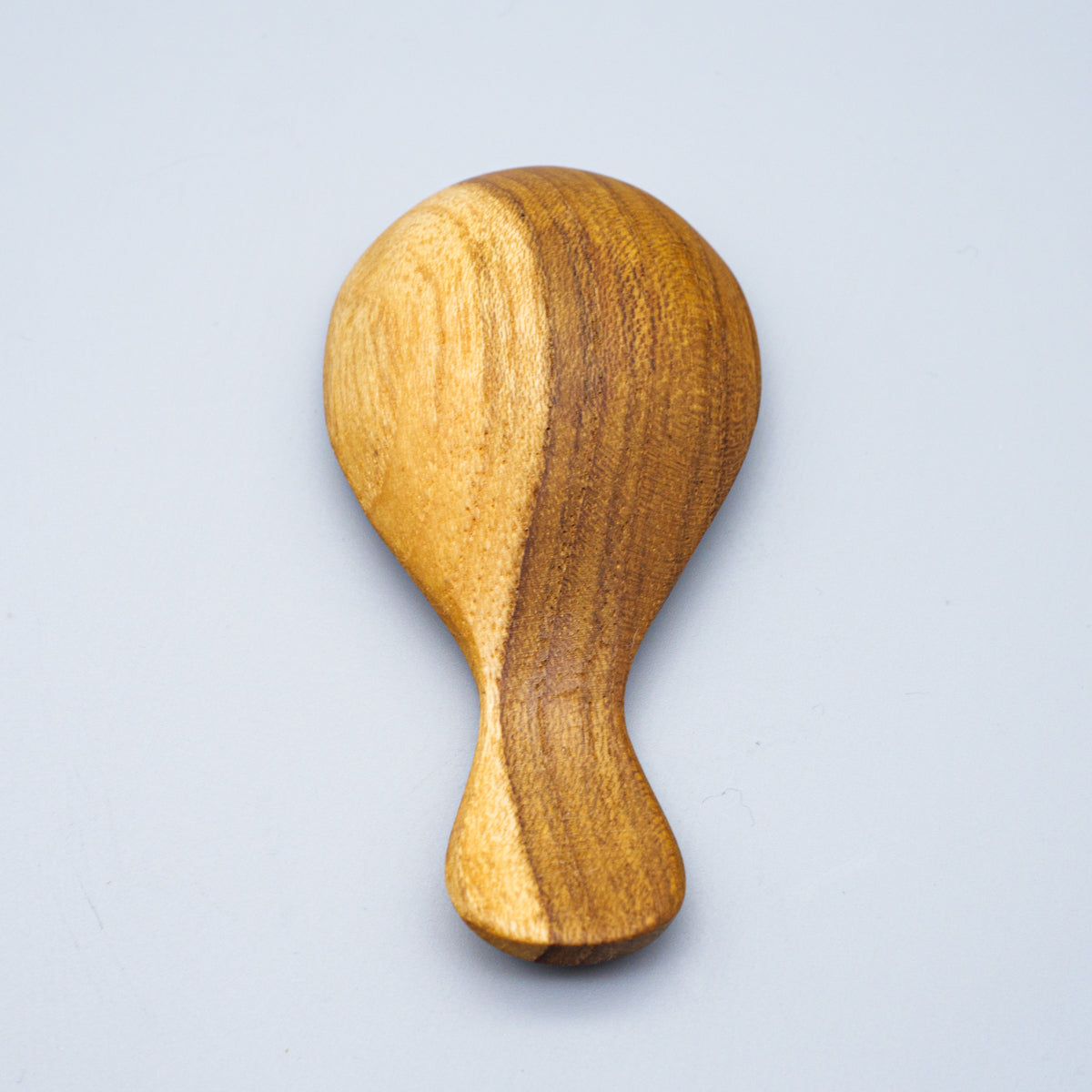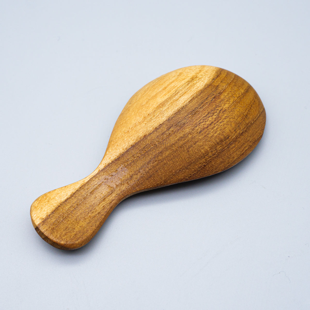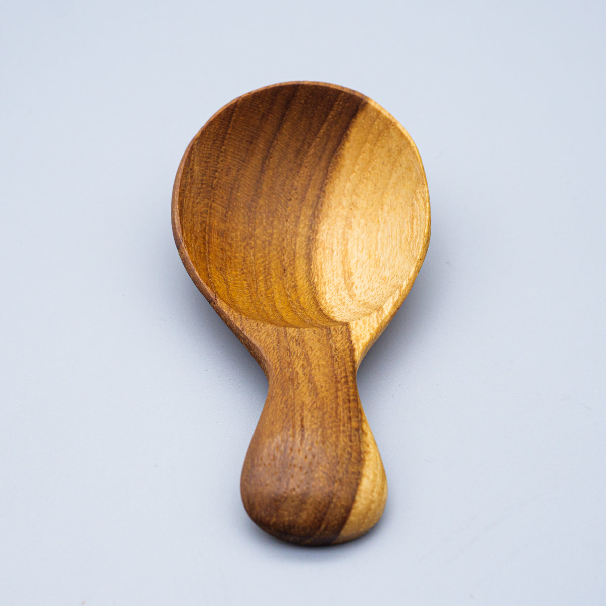 硬いチーク材を使用した様々なカトラリー。丸くて深い愛らしい形をしたスクープ(物をすくう道具)。茶葉や調味料入れとしてお使い頂ける匙。まるで地面に落ちている石のような素朴な箸置き。通常の洗剤で洗って頂けますが、乾いたらすぐにフキンで吹いてあげて、時々自然由来のオイルを塗ってあげると長持ちします。