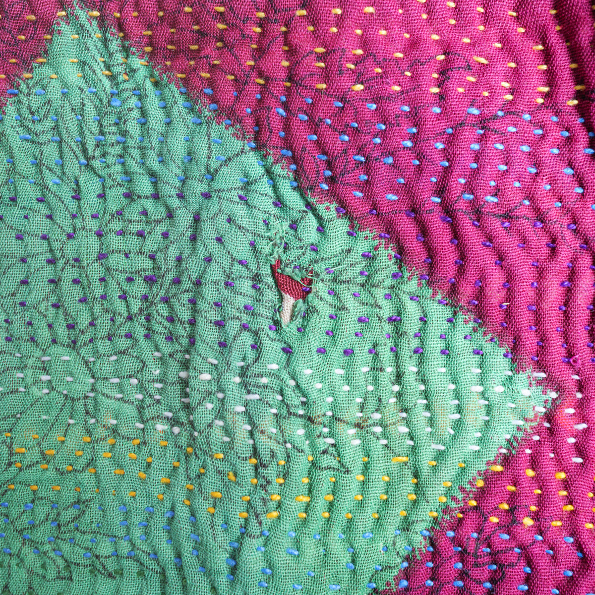 ※最後の画像にあるように、表面下部に表の薄生地の小さな破れがございますが目立たず使用上も問題ございません。また完全にハンドメイドのため、刺し子のほずれ等がありますが、 風合いとしてお楽しみください。