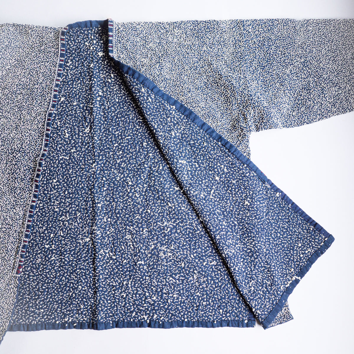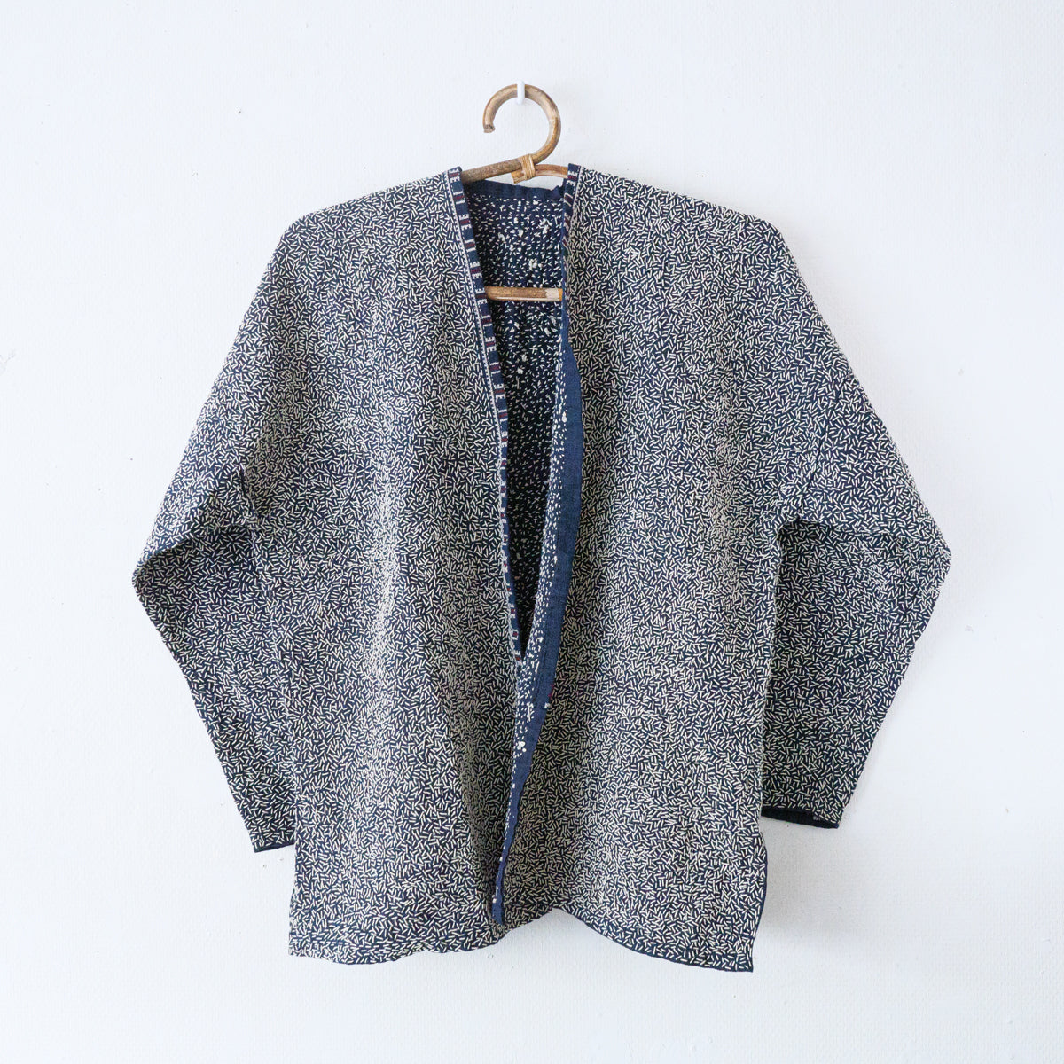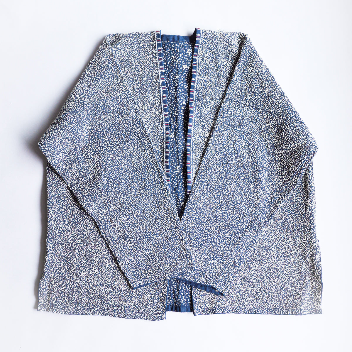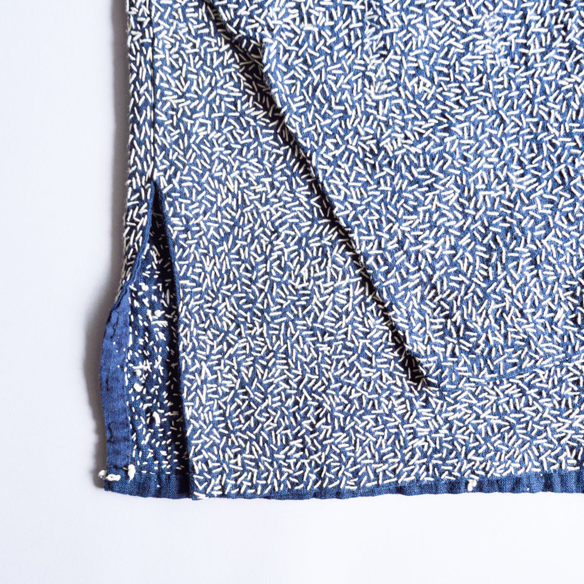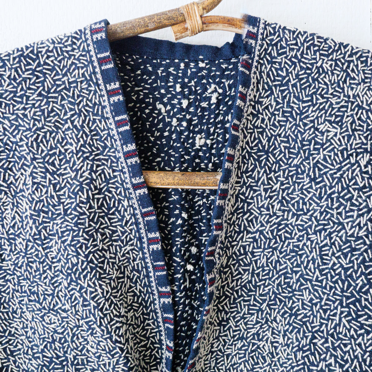 刺し子のショルダーバッグが大人気のタイ北部に住む少数民族ヤオ族による、もの凄い細かい刺し子を施したジャケット。元々のブルー生地が白く見えるくらいの刺し子量です。思わず眺めているだけで幸せな気持ちになってきます。