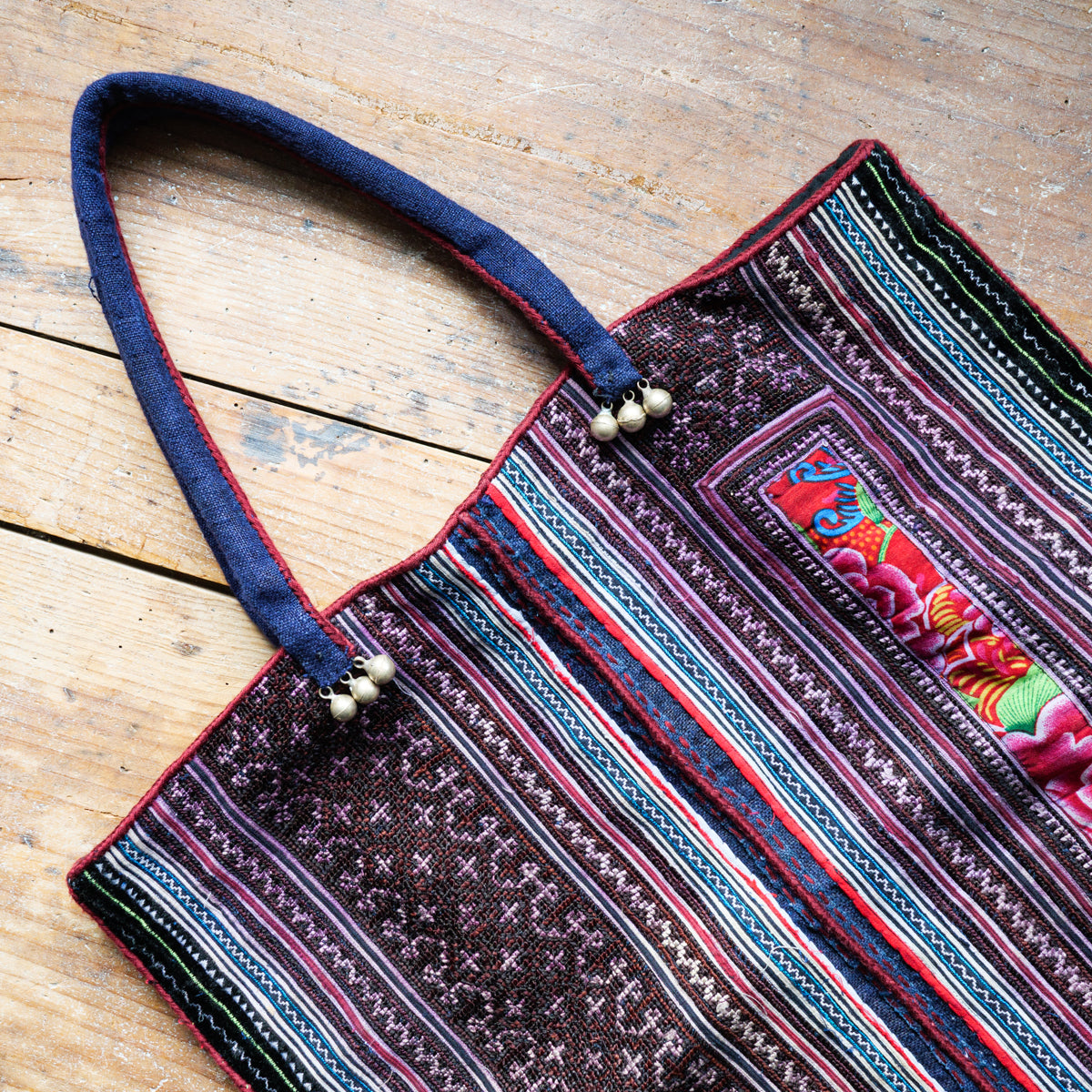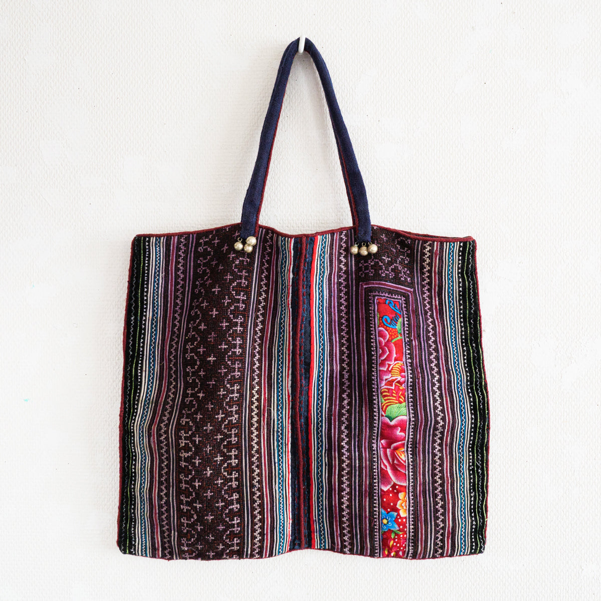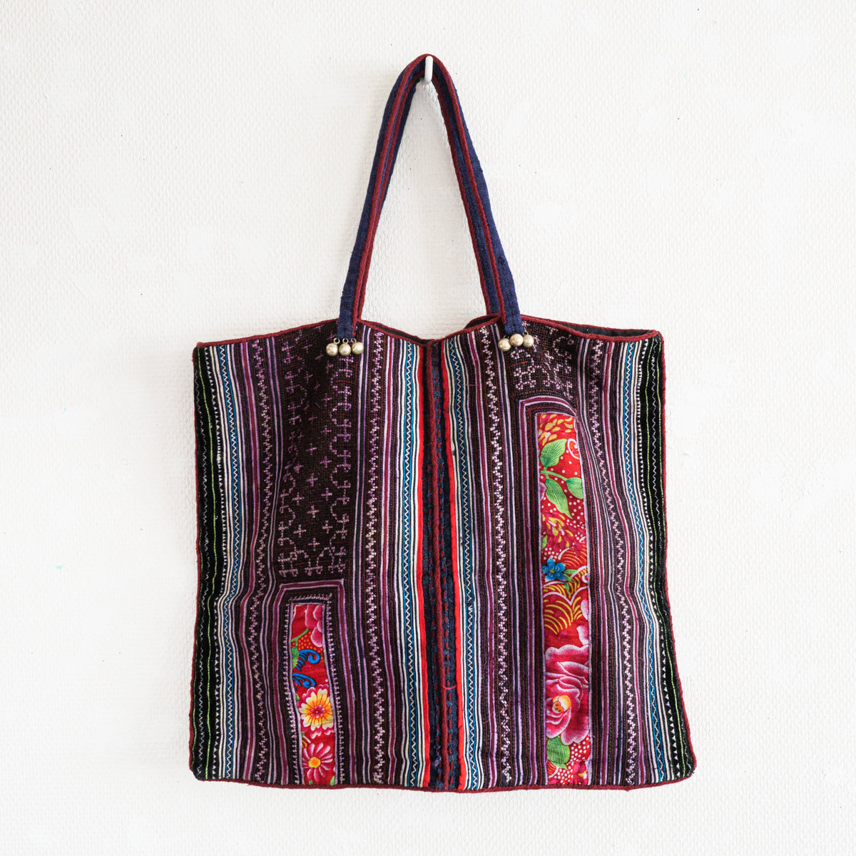 リネンとシルクをメインに色とりどりの様々な生地をパッチワークして作られた少数民族モン族のトートバッグ。