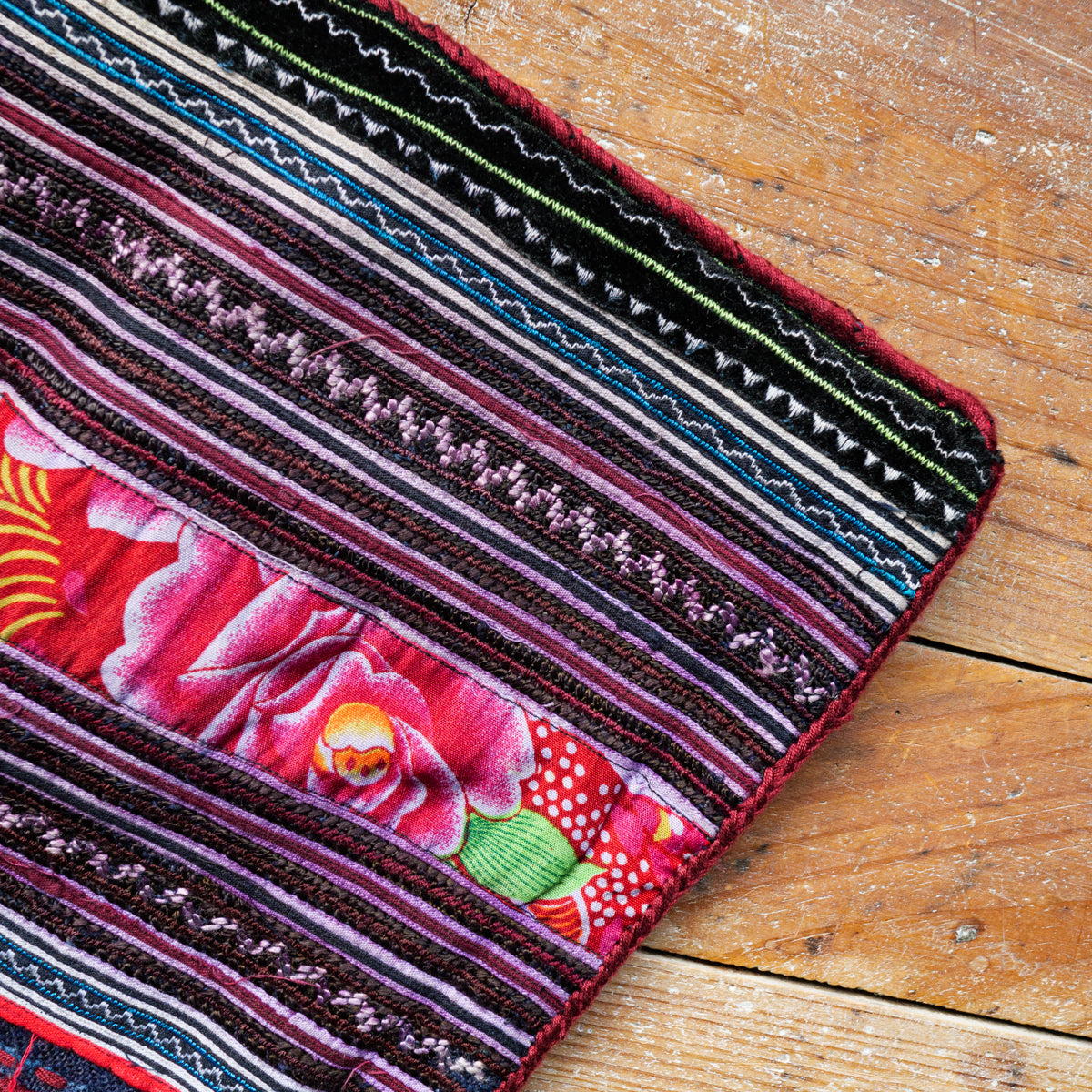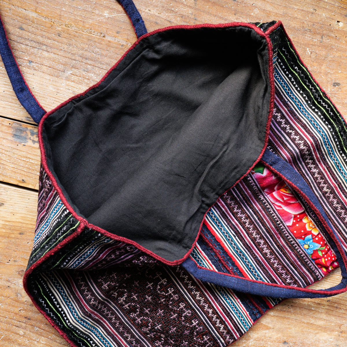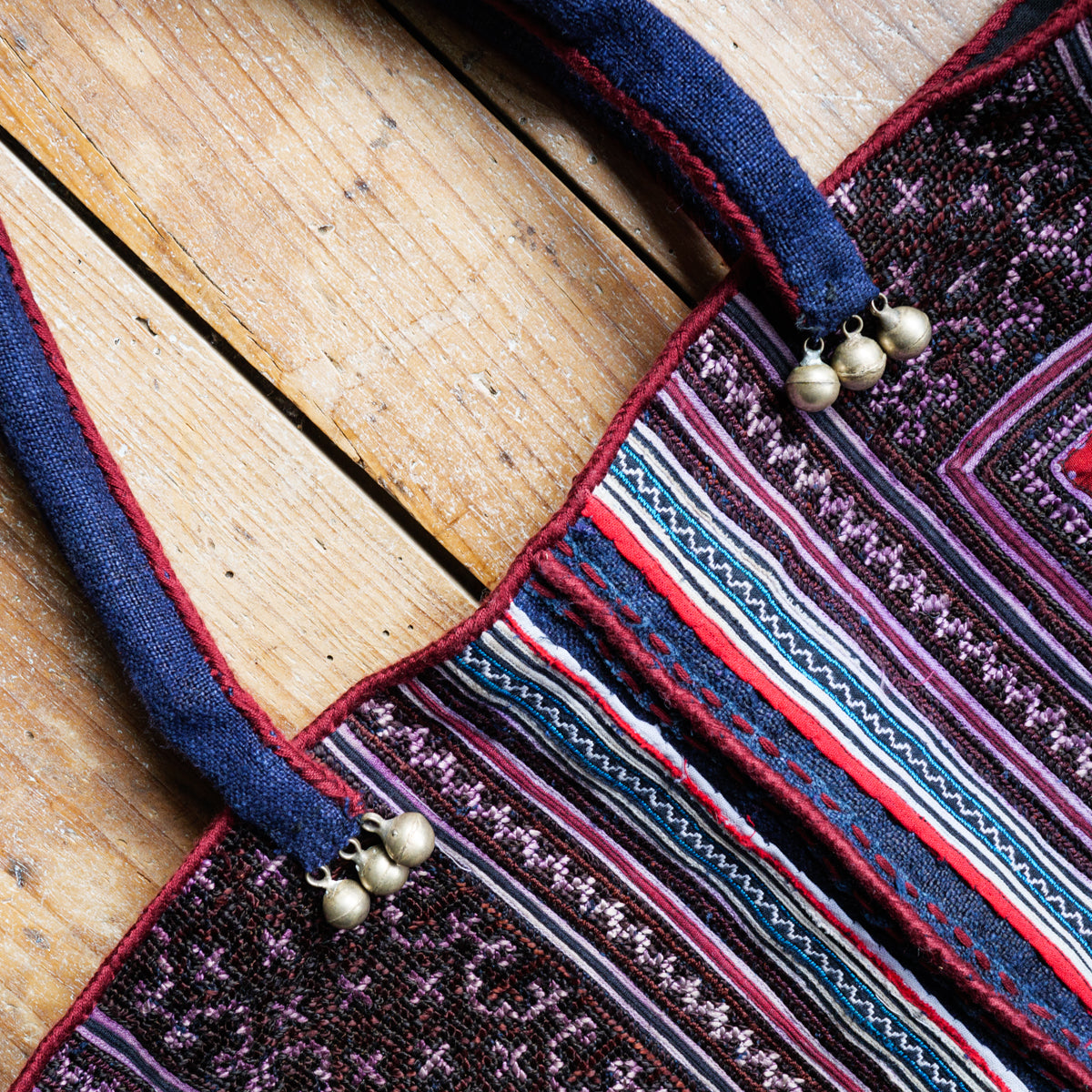 リネンとシルクをメインに色とりどりの様々な生地をパッチワークして作られた少数民族モン族のトートバッグ。