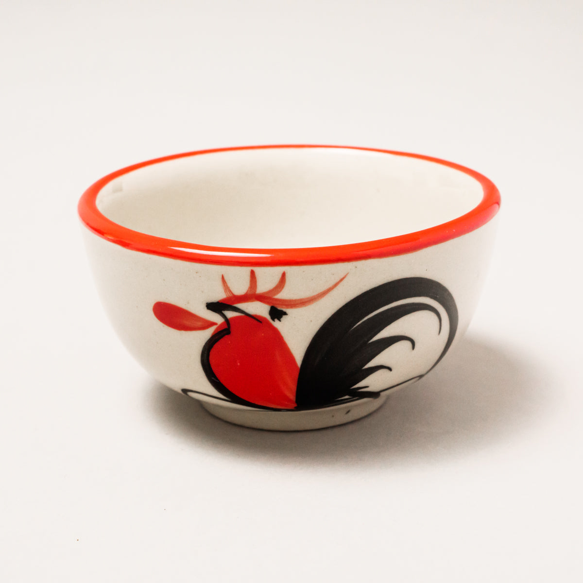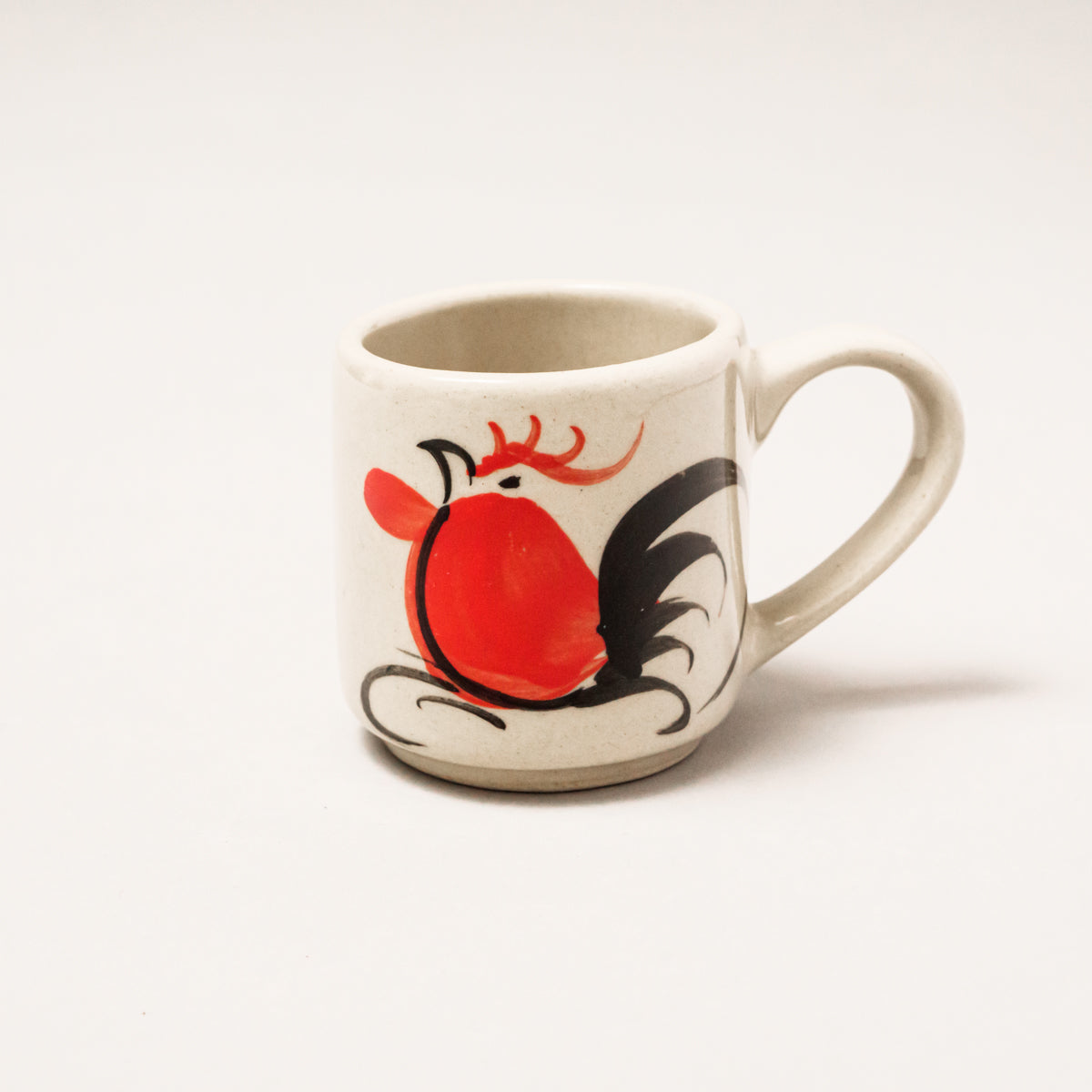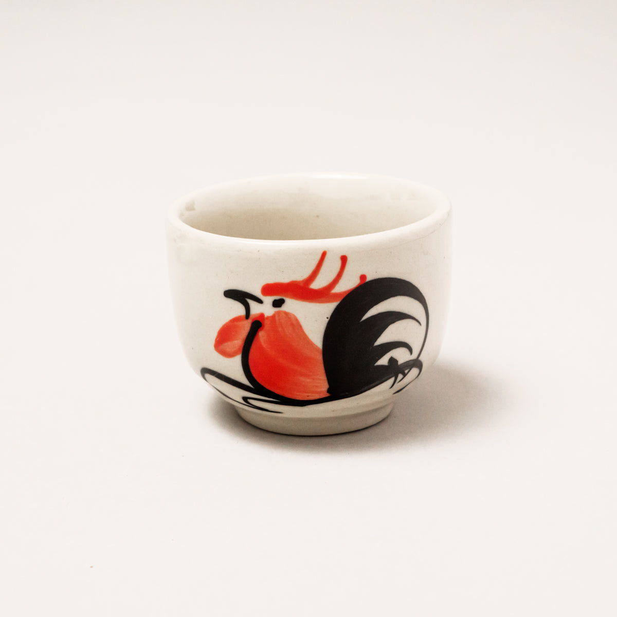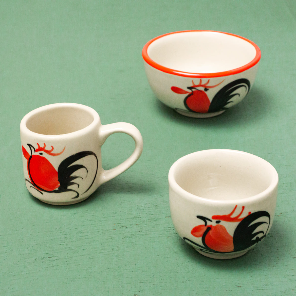 タイ北部陶器の街ランパーンの手描きで制作された陶器製品たち。ランパーン陶器の象徴である赤色の鶏模様が描かれているシリーズになります。ちなみに「昔鶏のお陰で朝寝坊をせず、お釈迦様を迎えることができた」という伝説から、鶏がランパーンのシンボルとなったそうです。