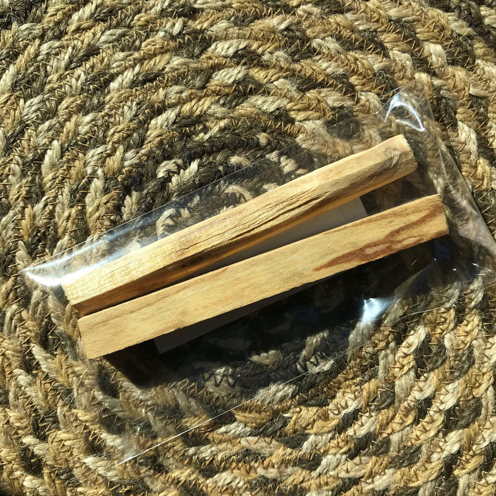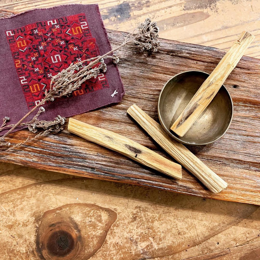 店内の匂いについて尋ねられることがありますが、 大方その正体はこちら。現地ではパロサント (神の木)と呼ばれる儀式にも使われる香木で、 このままでも香りますが、火を炊くと瞬く間に匂いが充満します。 少し立つと自然消えるるので、実際には長い間お使い頂けます。浄化作用があると言われ、安らぎや集中したい時に大推薦!当店の定番中の定番アイテムです。イメージ写真の中にある木2本がセットのパック販売。