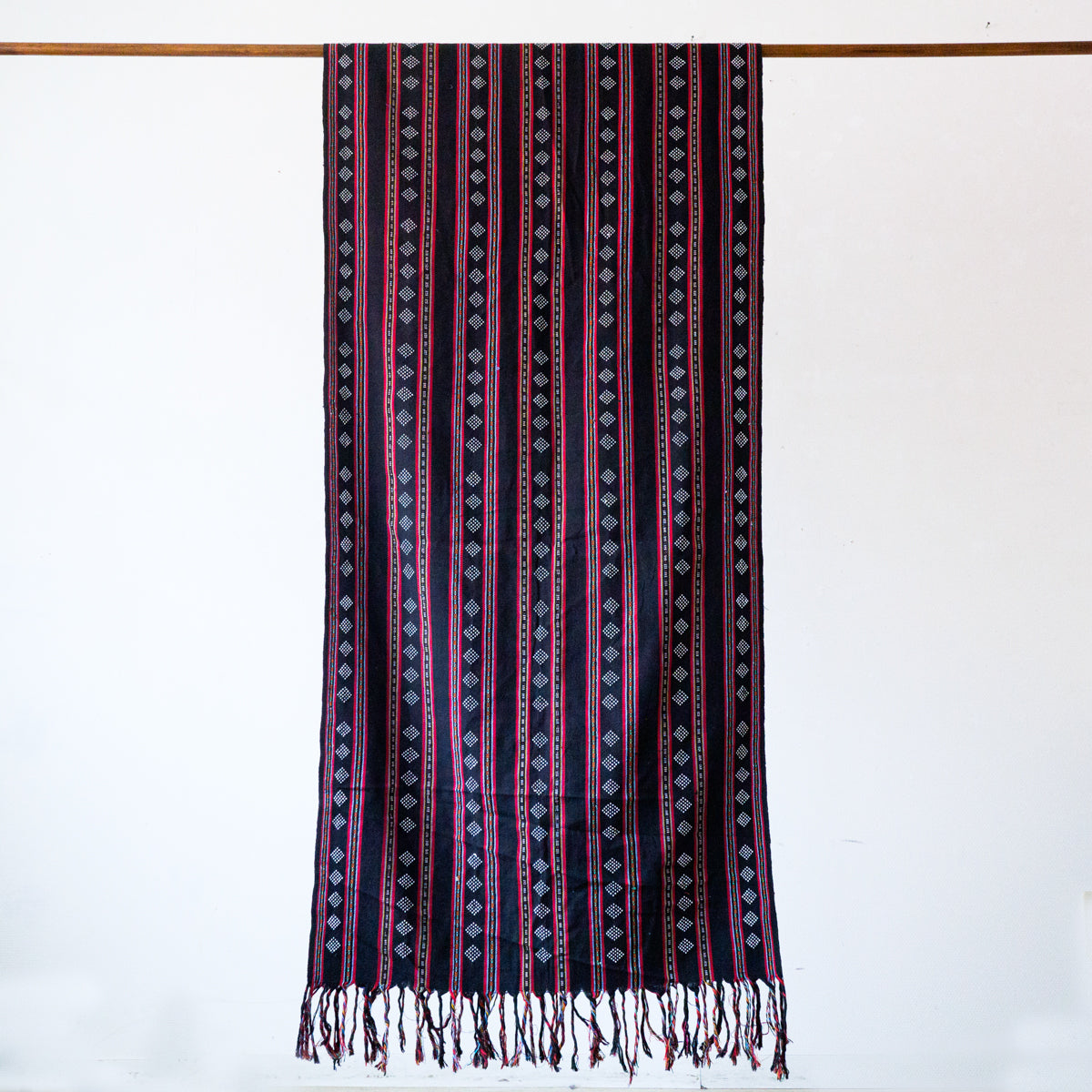 ベトナム中部の少数民族で手織物の名手として知られるカトゥー族による長いタペストリー。彼ら特有の直接ビーズを織り込んで仕上げたものになります。
