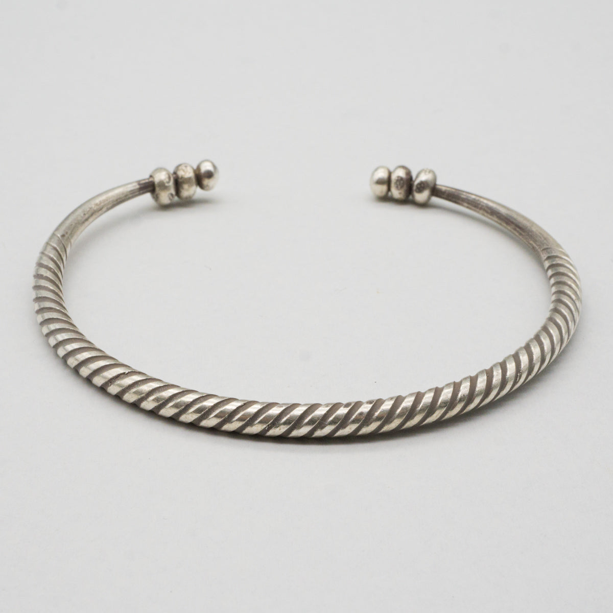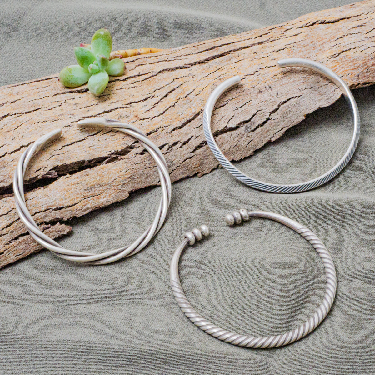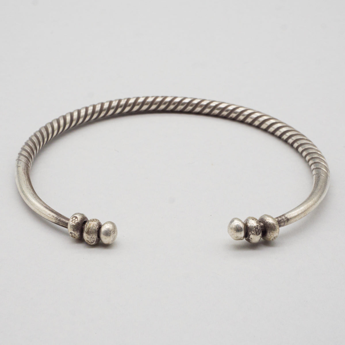 タイ北部からミャンマーにかけて分布する少数民族、カレン族が製作したシルバーアクセサリー。95%以上の高純度のシルバーで、軽くて柔らかいのが特徴です。さりげなく特徴的なデザインでとても付けやすいです。こちらのバングルは全てフリーサイズになります。