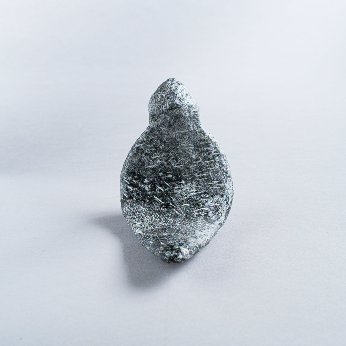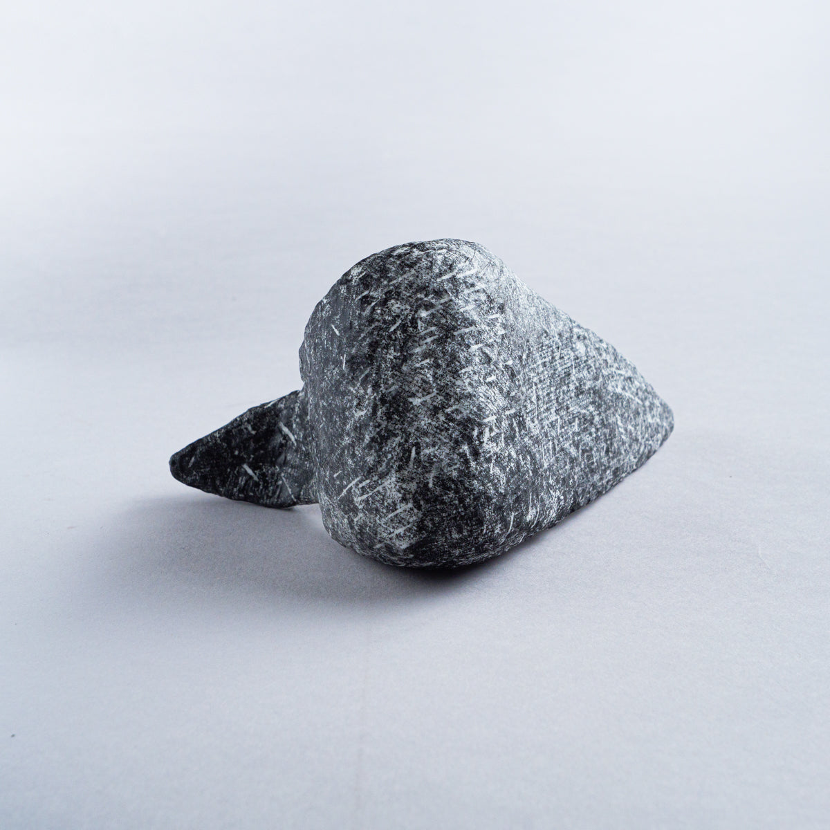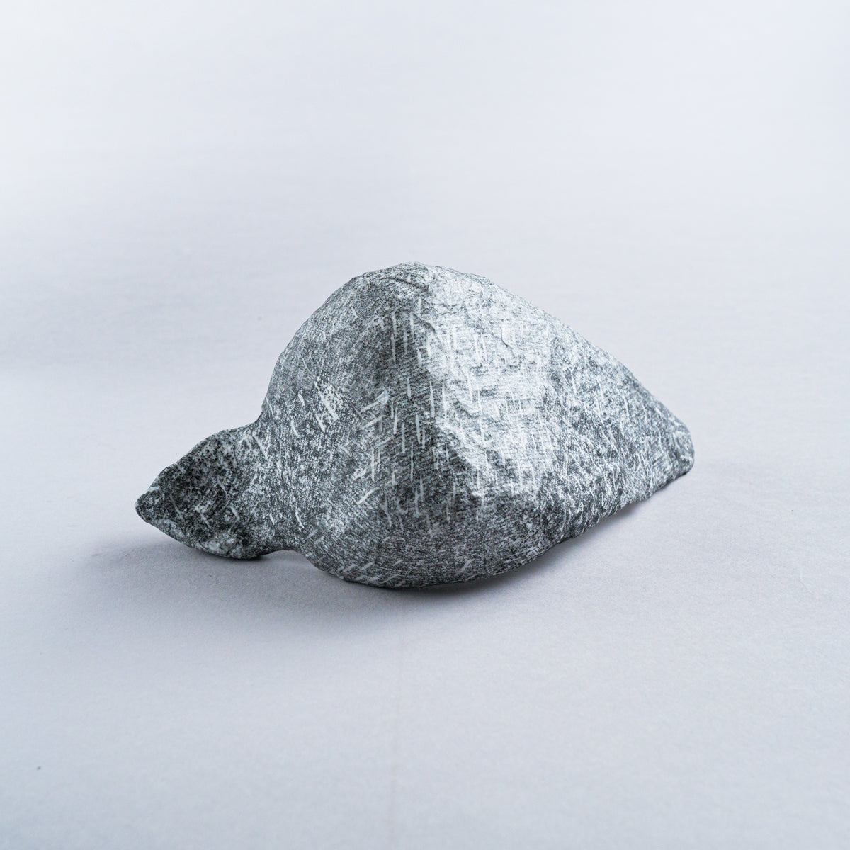 台湾の美術作家、林希羽(V vv studio)による 銅版画オブジェ作品。こちらは鳥が座っているシリーズになります。芯の部分を茶紙で成形し、表面に幾重にも習字の半紙を重ね、さらに表面をグルーで固めて制作したもの。見た目は石そのものですが、持つと軽くて風合いを感じられるという不思議な気分にさせてくれるオブジェ。趣がある優雅な雰囲気で、インテリアとしてオススメです。