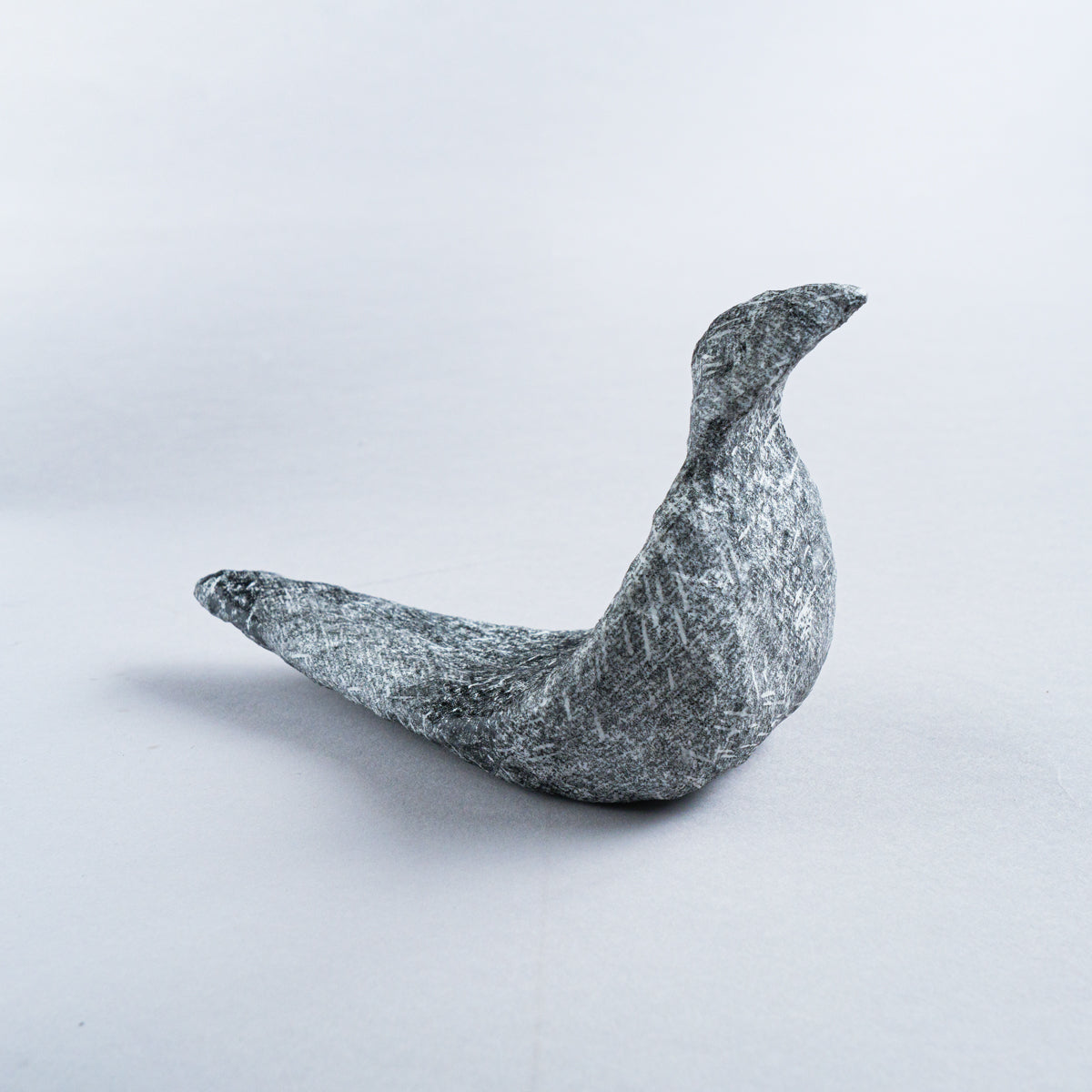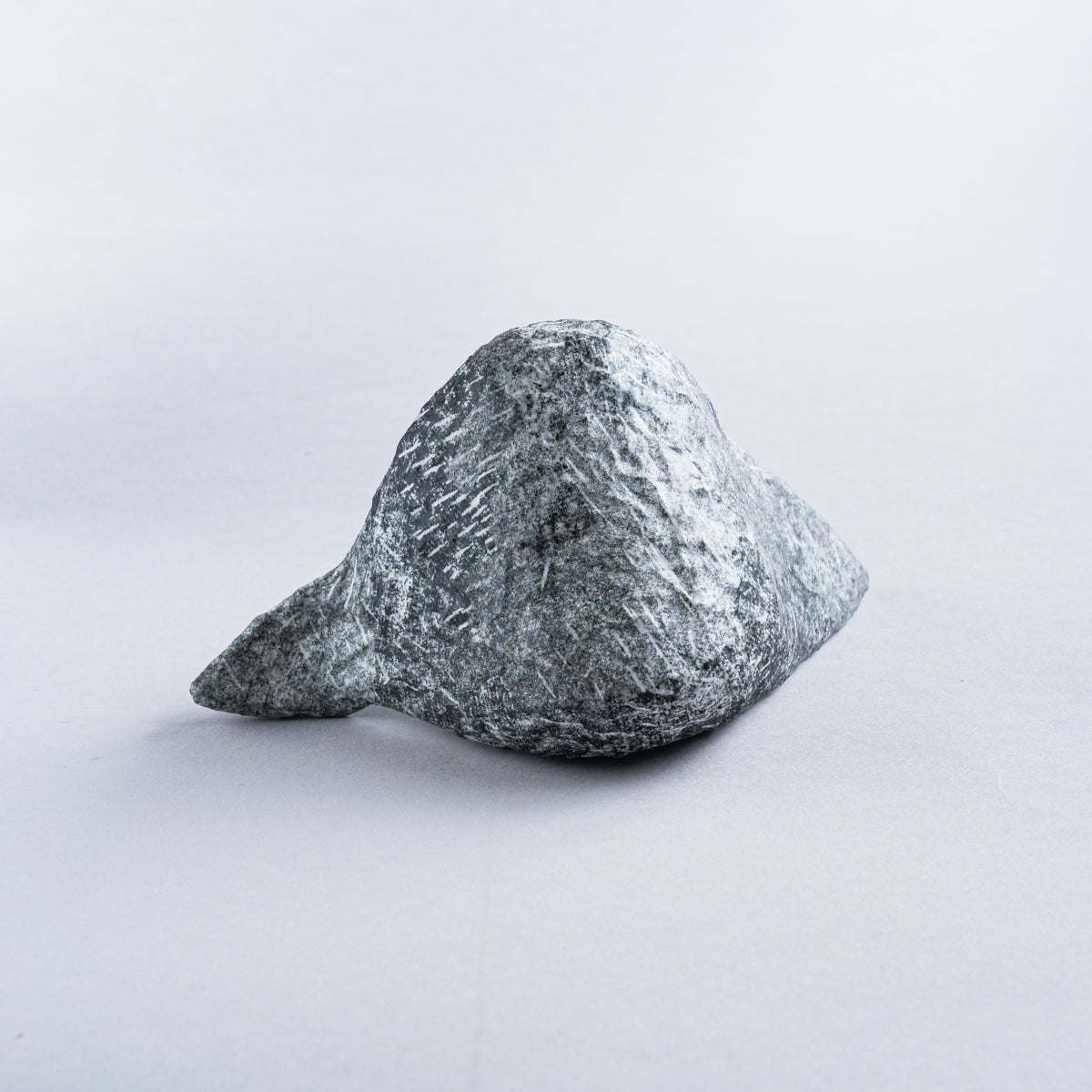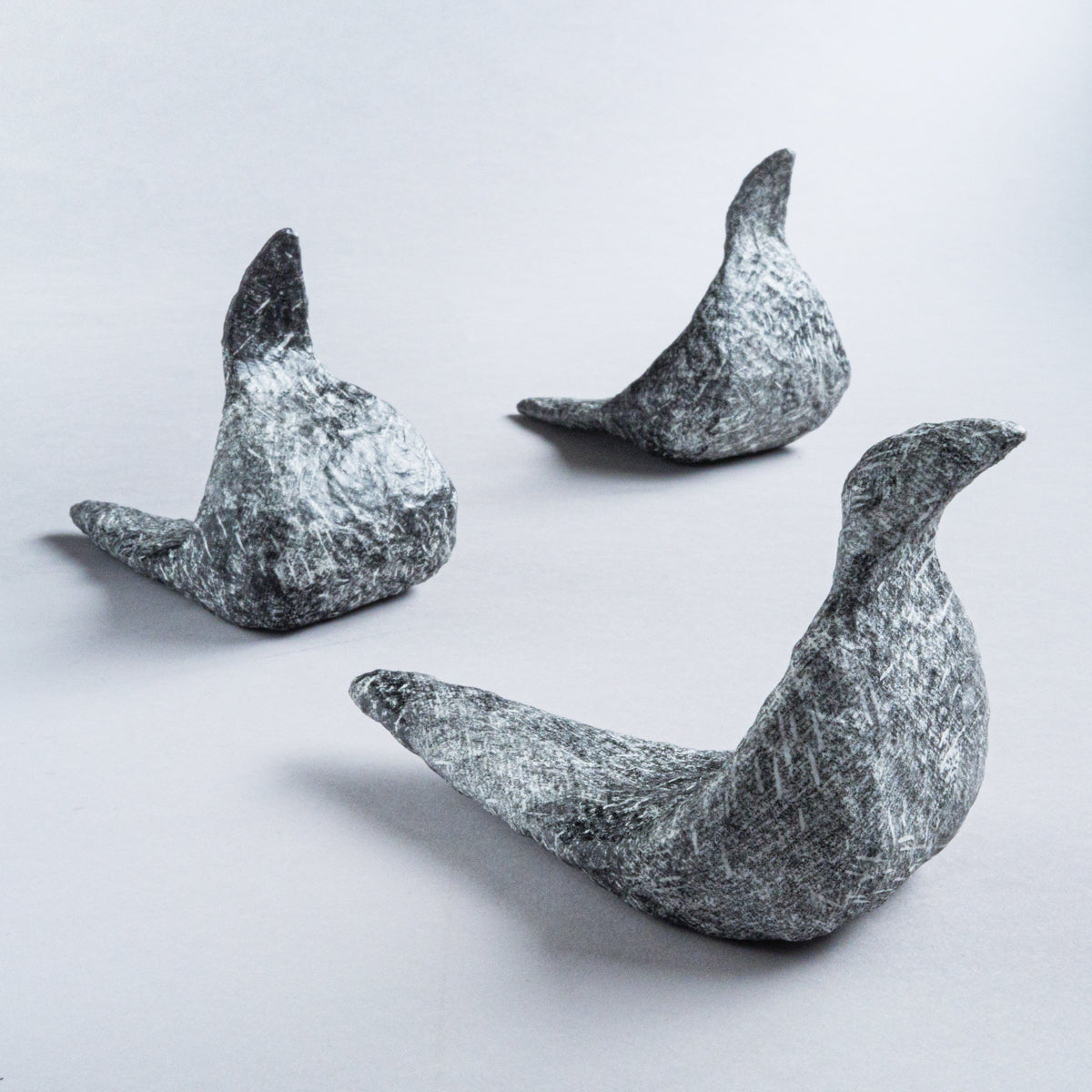 台湾の美術作家、林希羽(V vv studio)による 銅版画オブジェ作品。こちらは鳥が座っているシリーズになります。芯の部分を茶紙で成形し、表面に幾重にも習字の半紙を重ね、さらに表面をグルーで固めて制作したもの。見た目は石そのものですが、持つと軽くて風合いを感じられるという不思議な気分にさせてくれるオブジェ。趣がある優雅な雰囲気で、インテリアとしてオススメです。